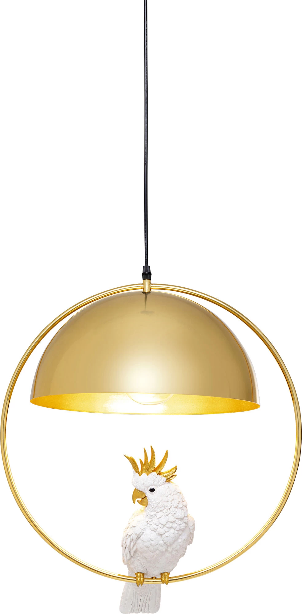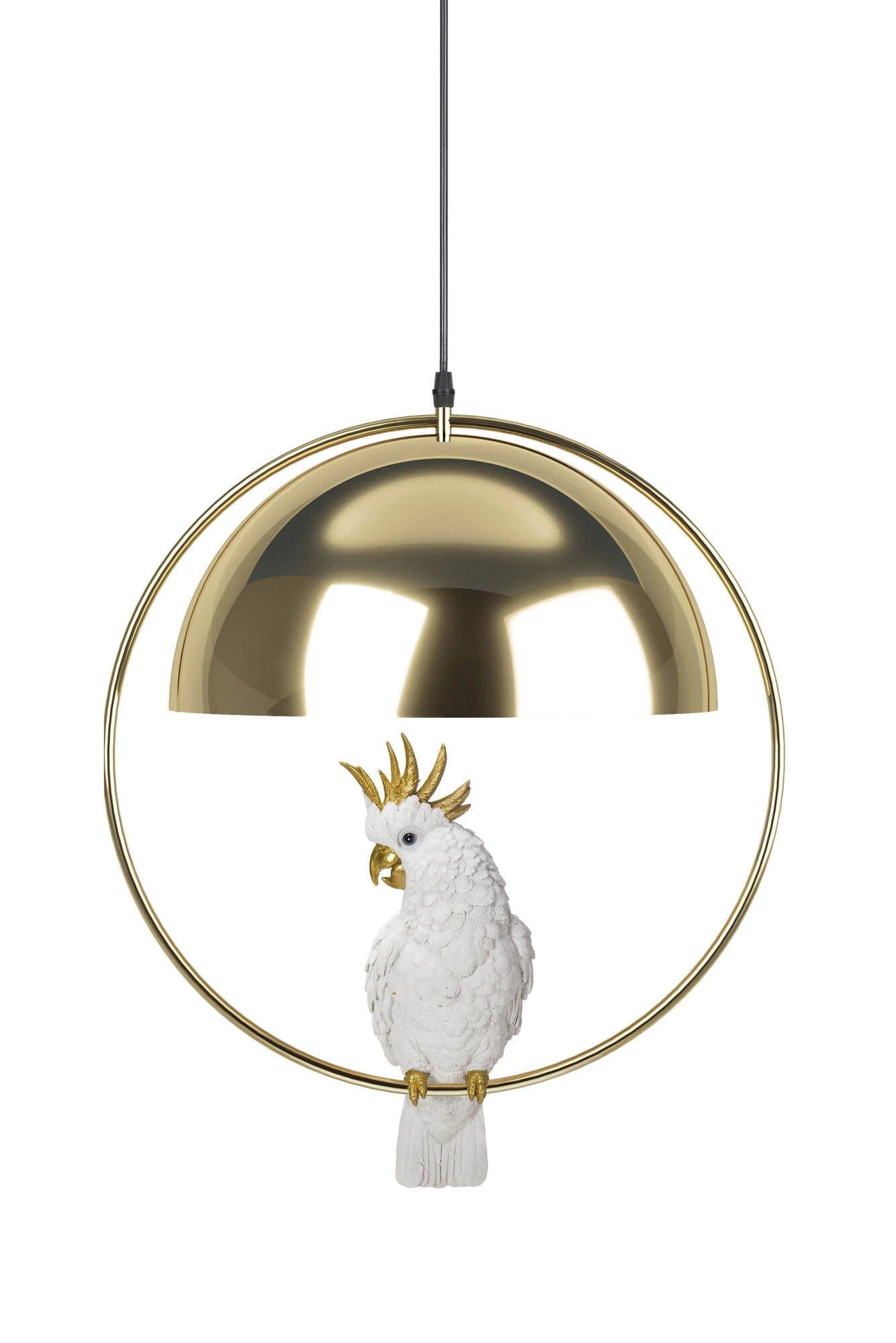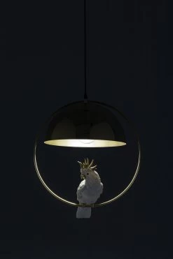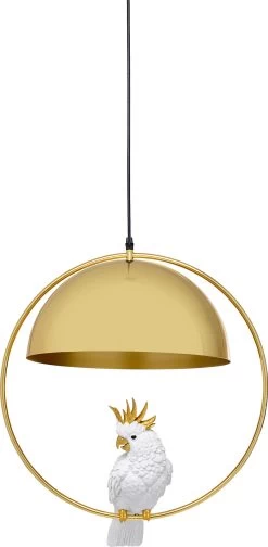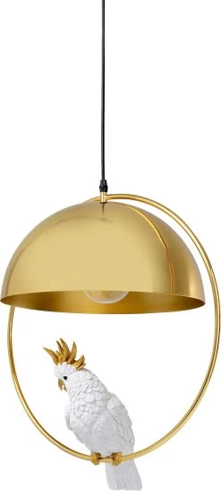 - Diese HĂ€ngeleuchte hat einen Vogel! Unter dem runden Schirm in Gold schaukelt ein hĂŒbscher Kakadu