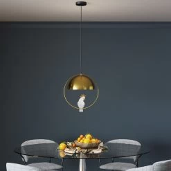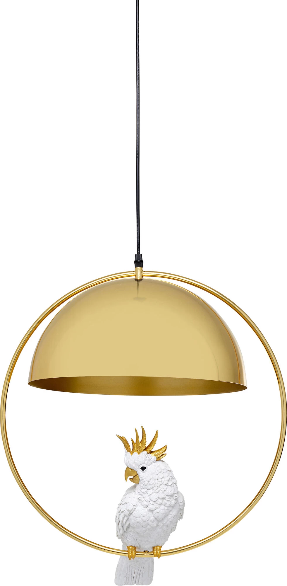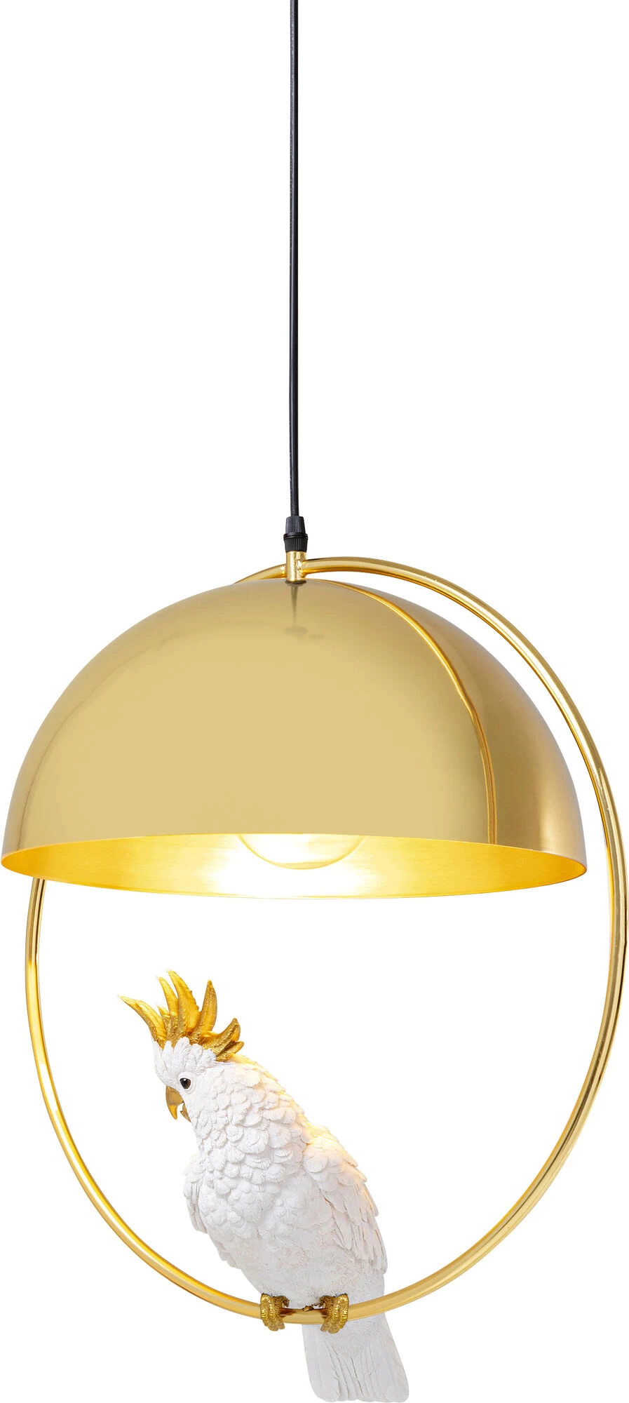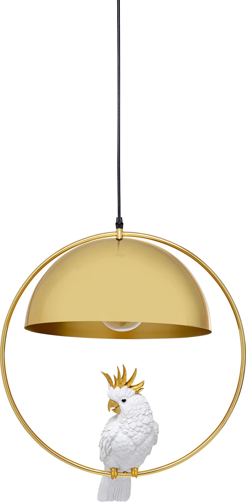 - Diese HĂ€ngeleuchte hat einen Vogel! Unter dem runden Schirm in Gold schaukelt ein hĂŒbscher Kakadu