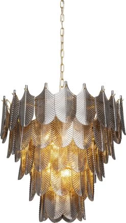 - Eyecatcher ist der 53 cm hohe Lampenschirm mit unzÀhligen, silbrig gefÀrbten Elementen in Blattform