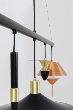 - Breite HĂ€ngelampe aus Metall in Schwarz, WeiĂ, Kupfer und Gold, 150 x 154.5 x 35 Zentimeter (H/B/T)
