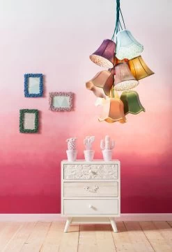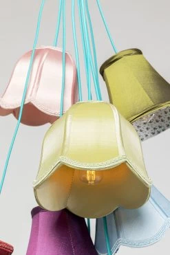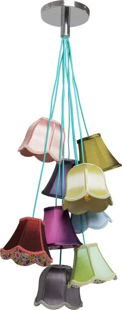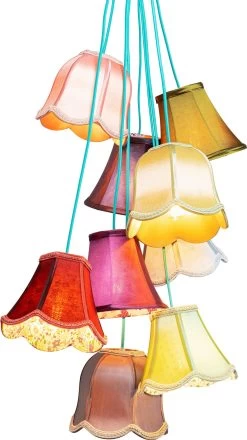 - Bunte HĂ€ngeleuchte mit neun Lampenschirmen, 110 x 60 x 60 Zentimeter (H/B/T)