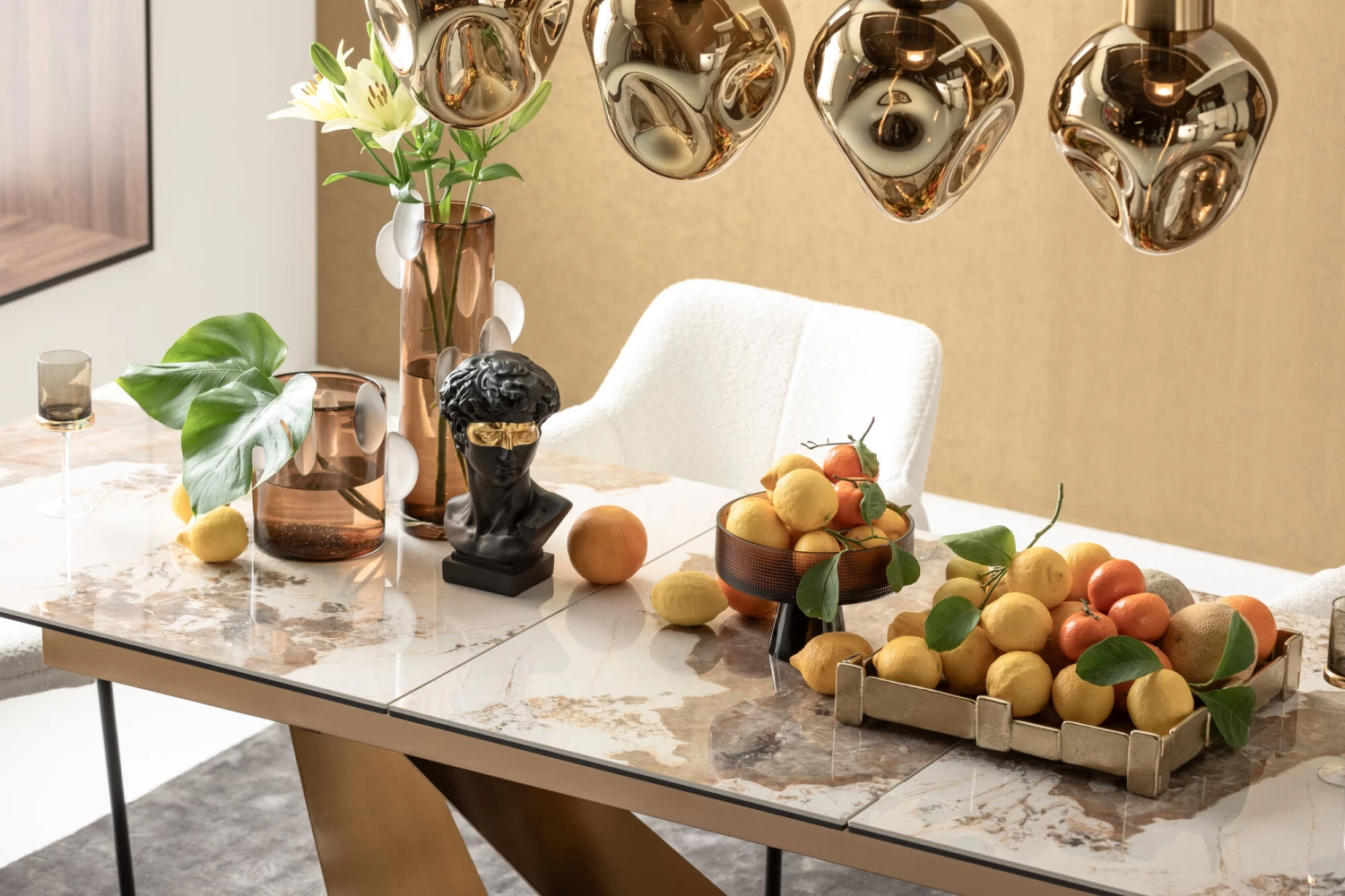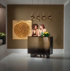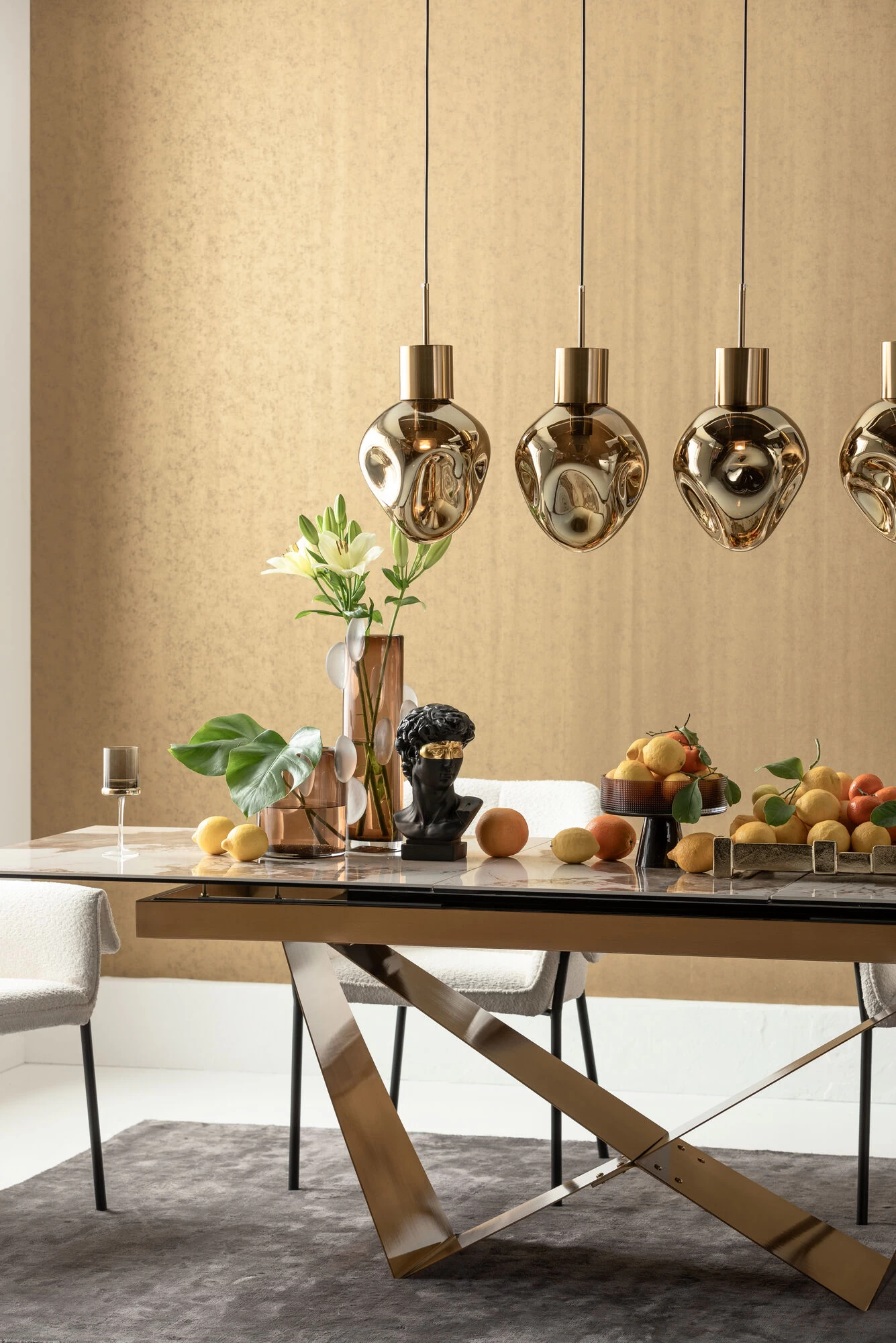 - Die goldfarbenen Lampenfassungen und der Decken-Baldachin sind aus titanbeschichtetem Stahl gefertigt