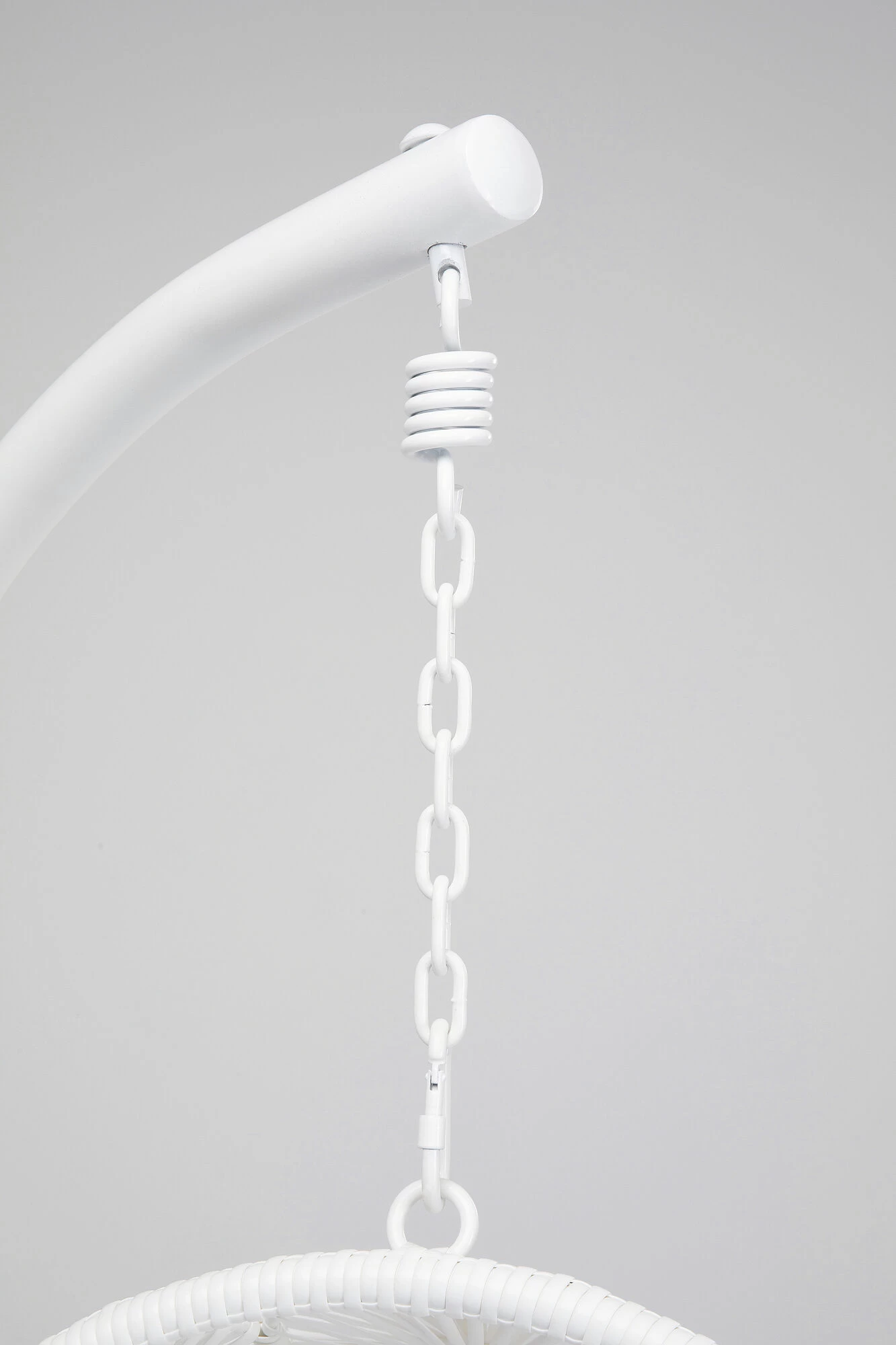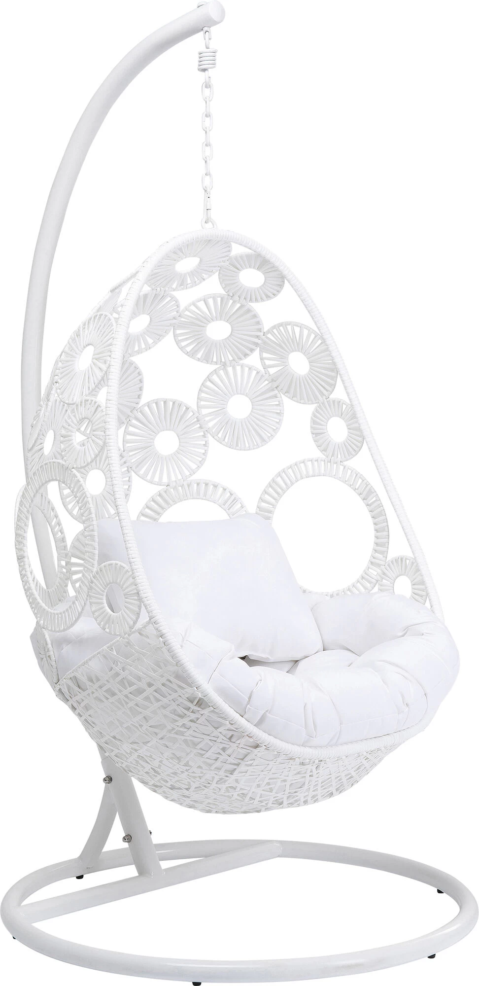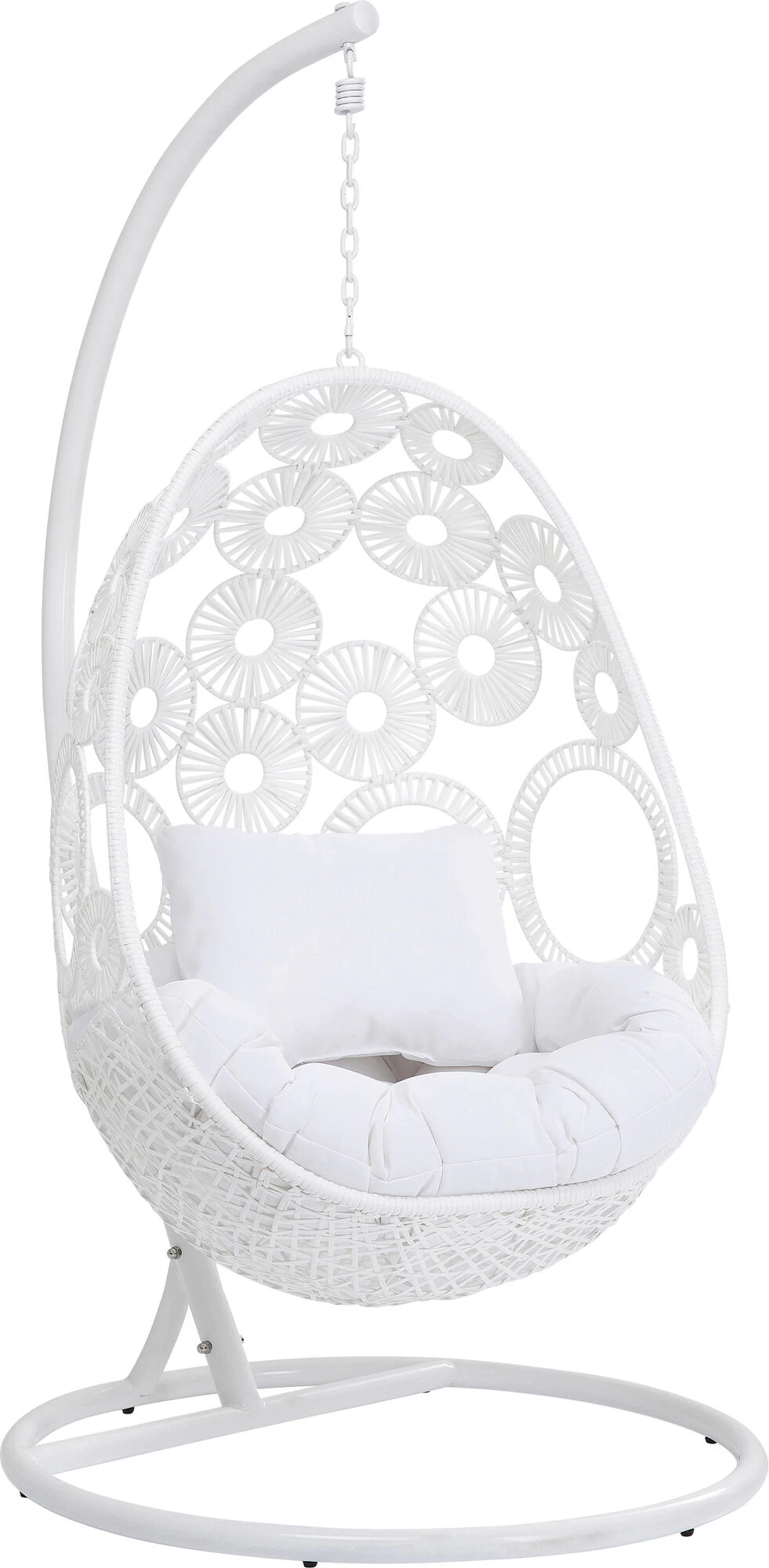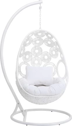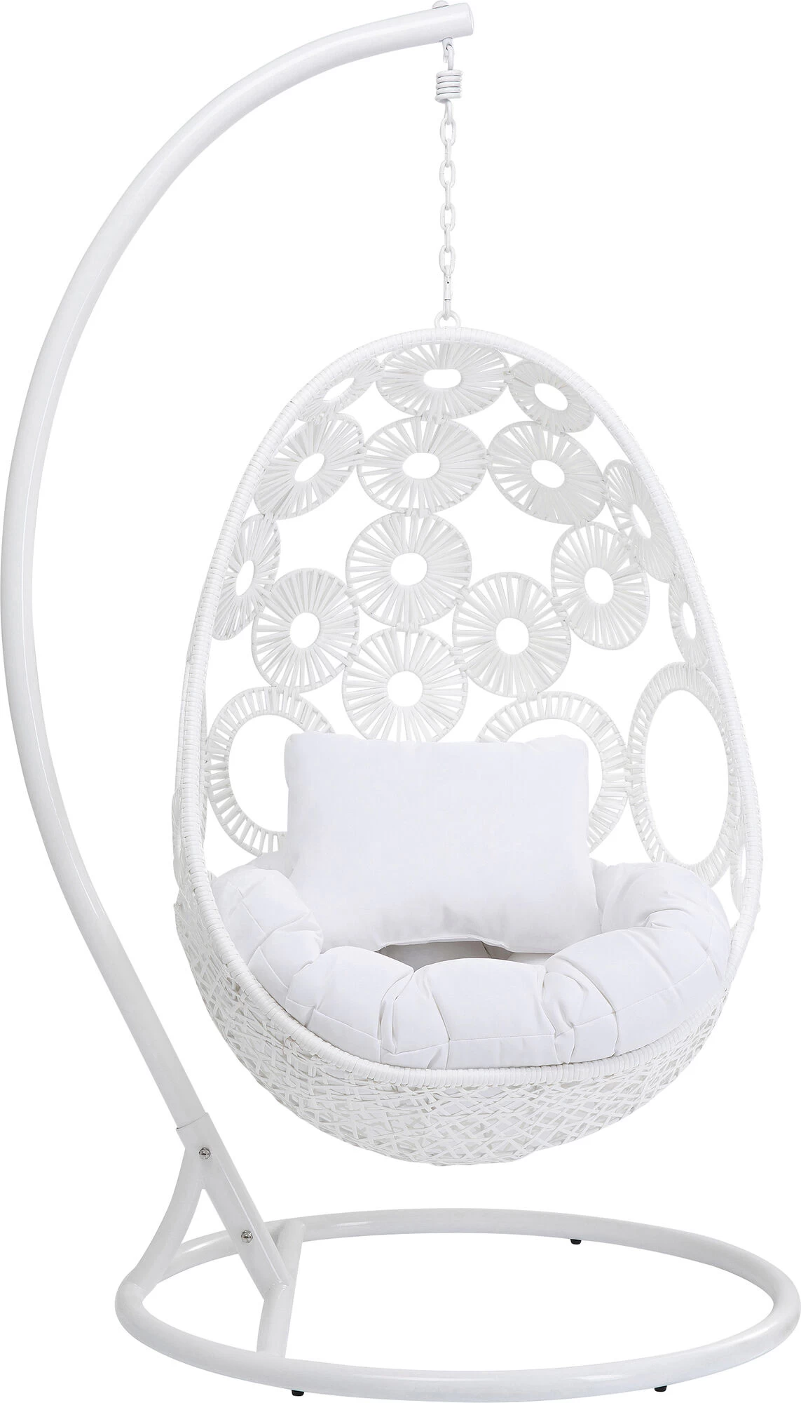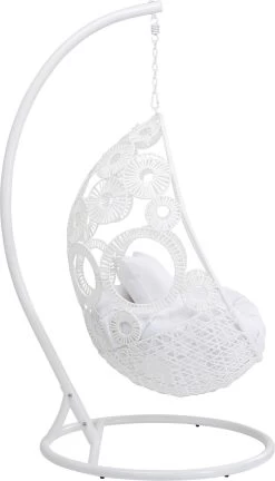 - Cooler, weißer Hängesessel im Boho-Style, der auch drinnen jedem Wohnzimmer-Sessel Konkurrenz macht