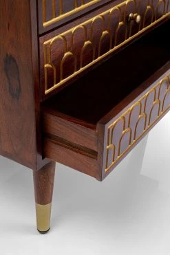 - Aufwendige Handarbeit: Die Kommode aus Holz wird von Hand mit eingravierten, goldenen Ornamenten verziert