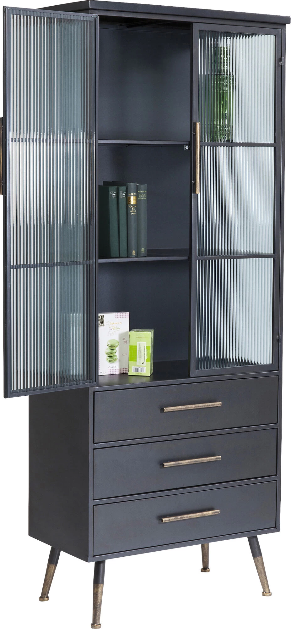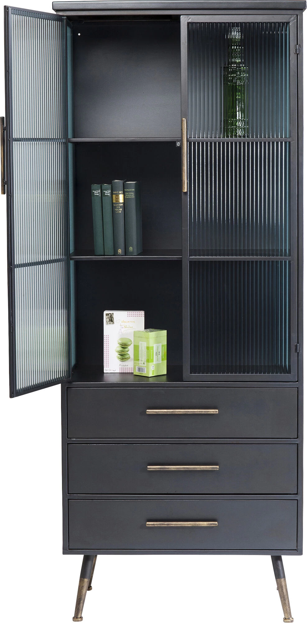 - Schmückendes Detail: die messingfarbenen Griffe und Füße, die dem Industrie-Design eine edle Note verleihen