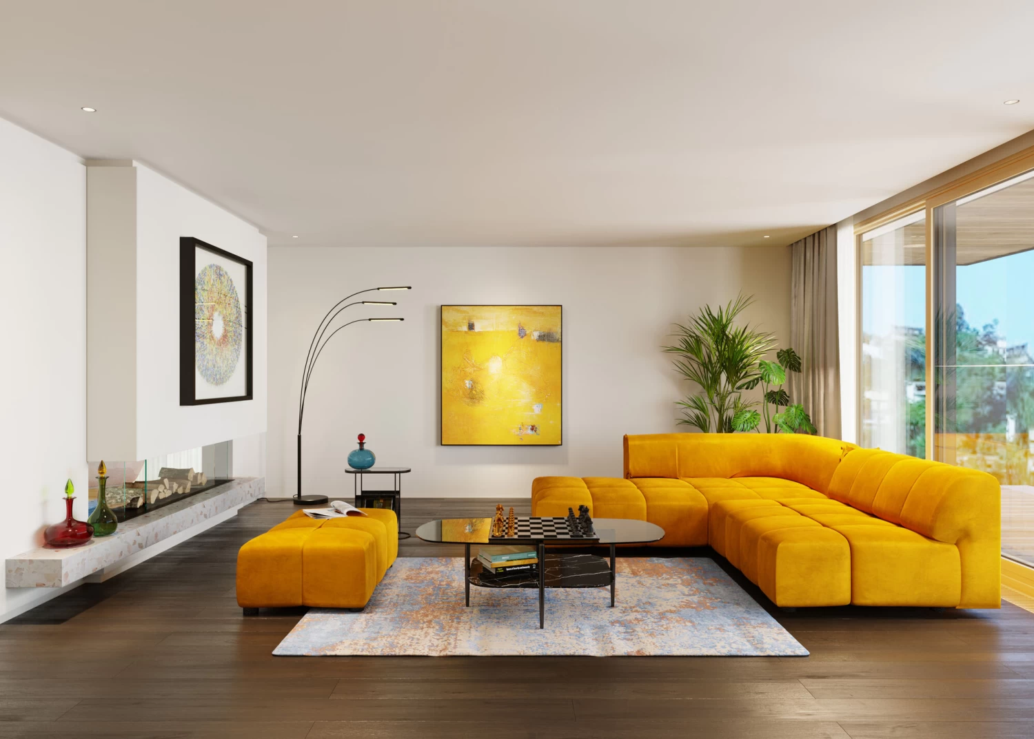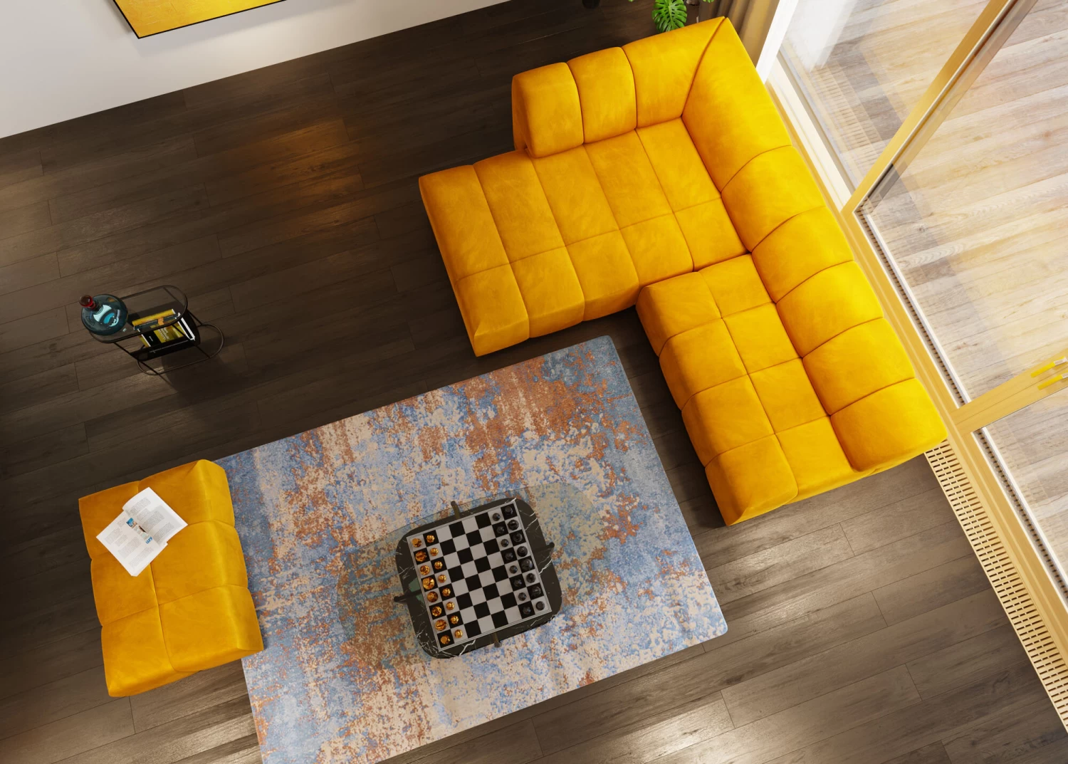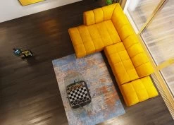 - Rechteckiger Sitzhocker mit Samtbezug in warmem Gelb, 42x105x70cm (H/B/T)