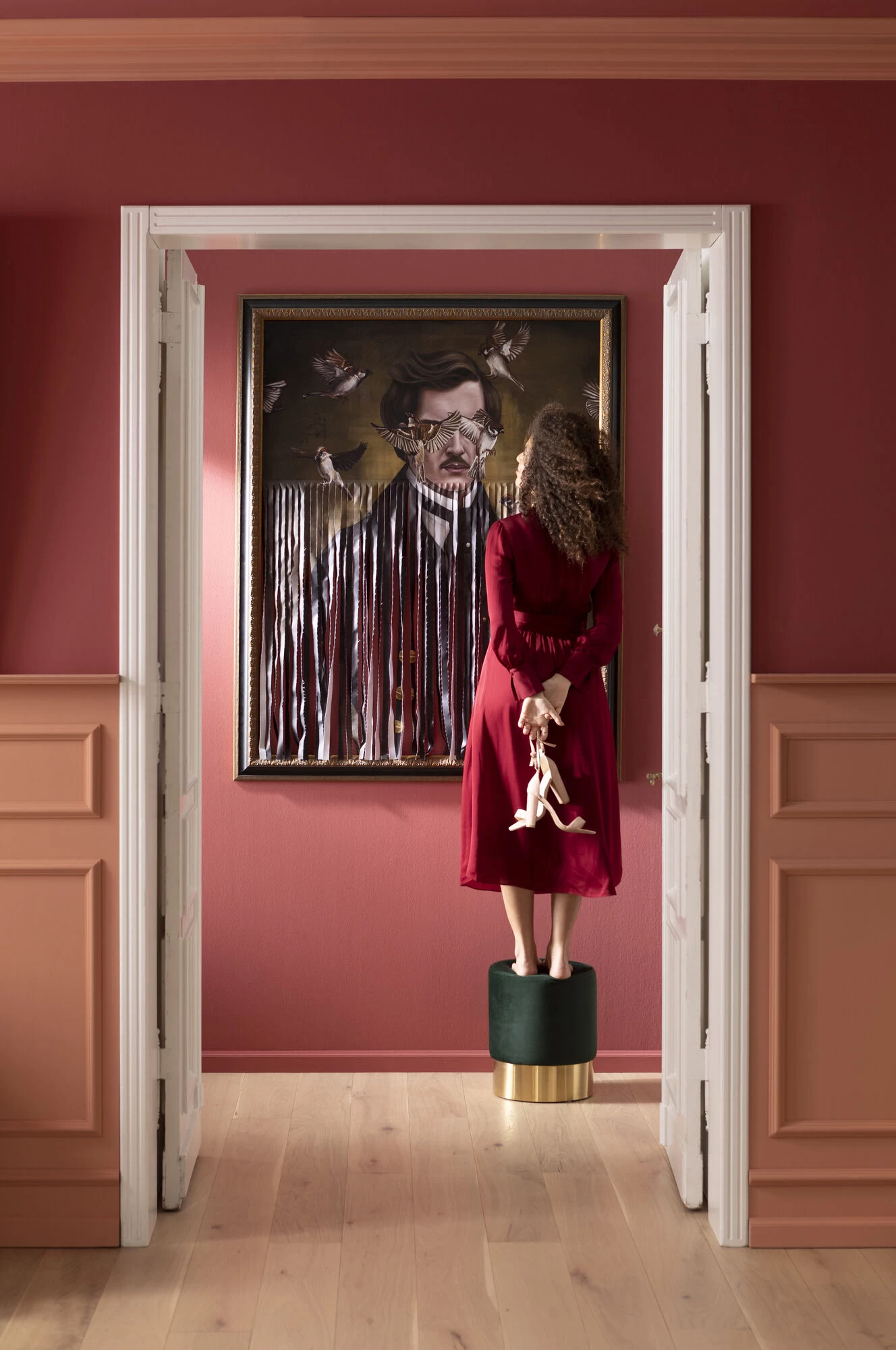 - Ein Trend-Piece mit Kunstfaser-Samt-Bezug im Stil des Happy Chic