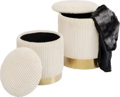 - Beide Sitzpoufs verfügen über einen abnehmbaren Deckel und praktischen Stauraum