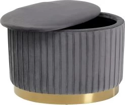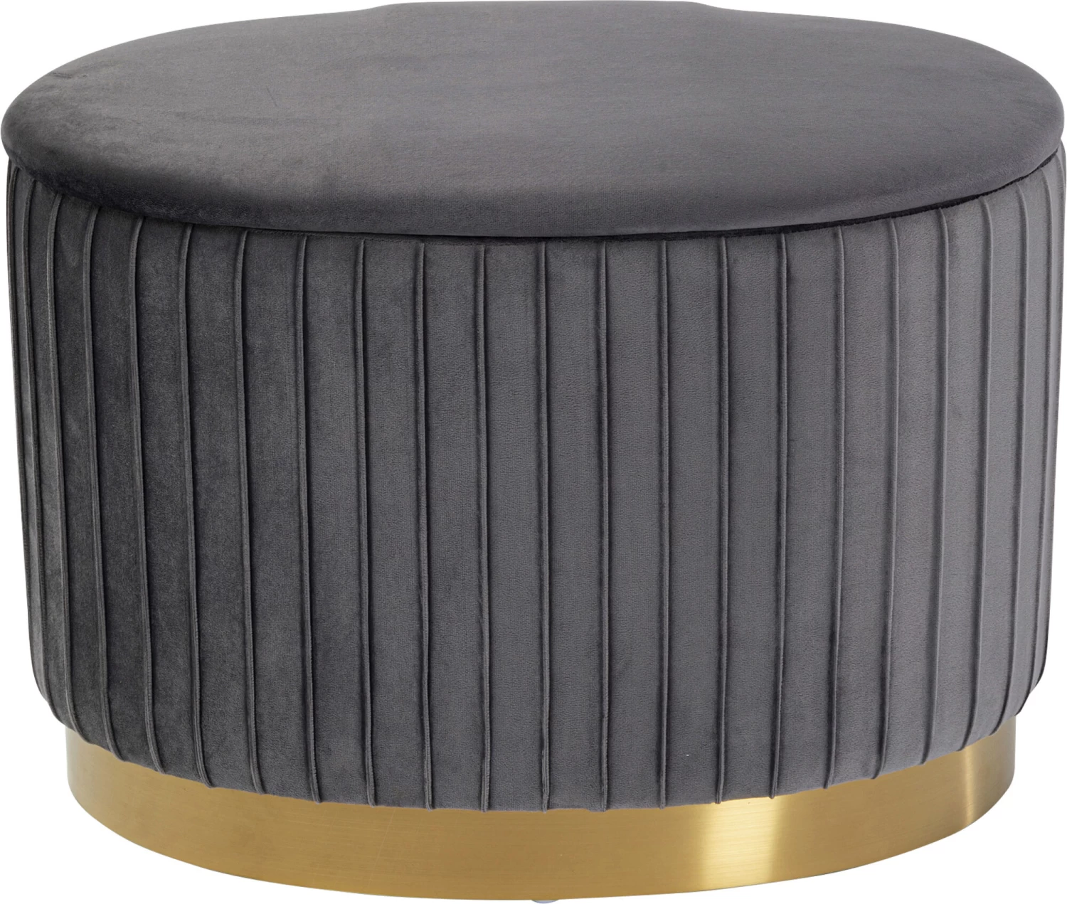 - Grauer, ovaler Hocker mit Stauraum, 43 x 60 x 40 Zentimeter (H/B/T)