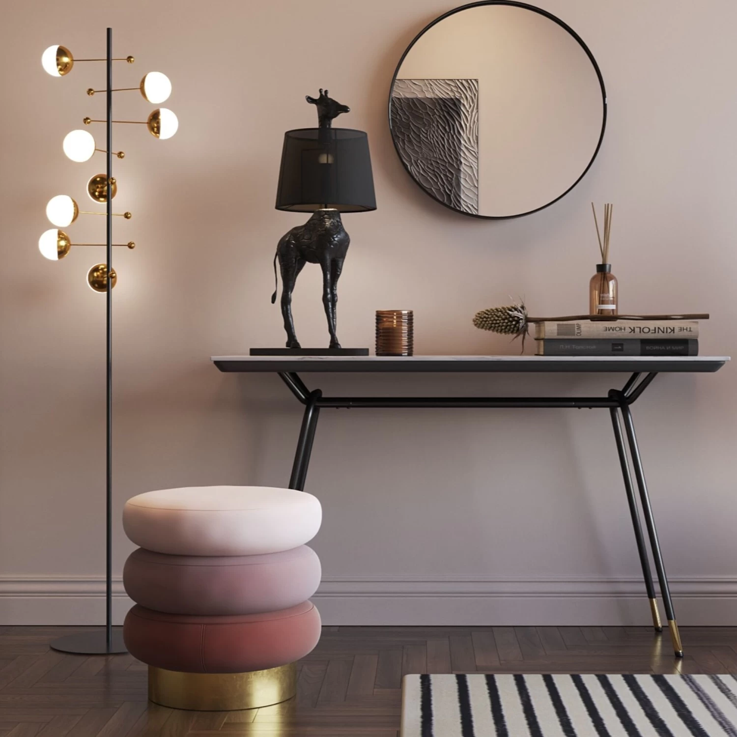 - Stylisten-Liebling: ein eleganter, runder Samt-Pouf in Pastellfarben, der jedem Raum sofort etwas Chic verleiht