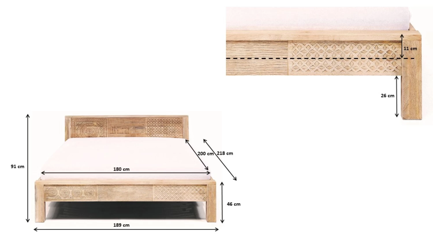 - Das Doppelbett ist komplett aus massivem Mangoholz gefertigt