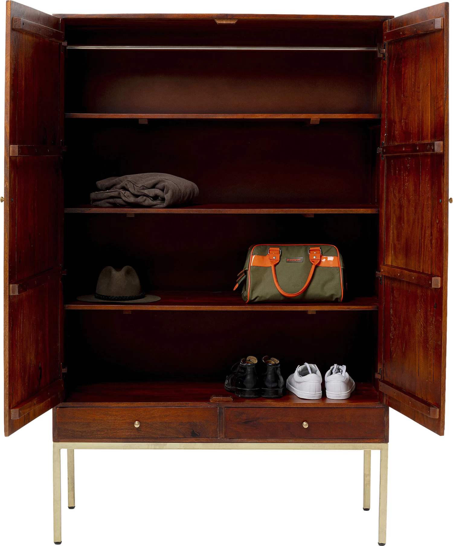 - Praktisch: Böden lassen sich herausnehmen. Ideal für Geschirr, Bücher und gefaltete, als auch hängende Kleidung
