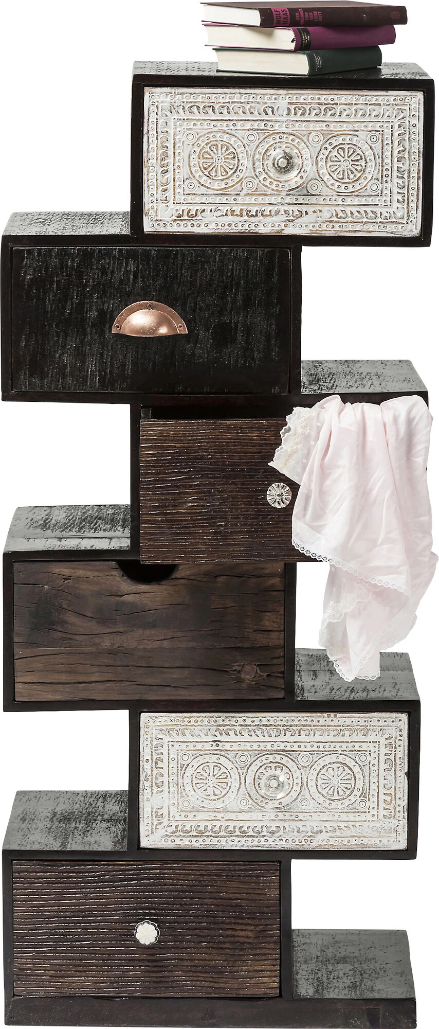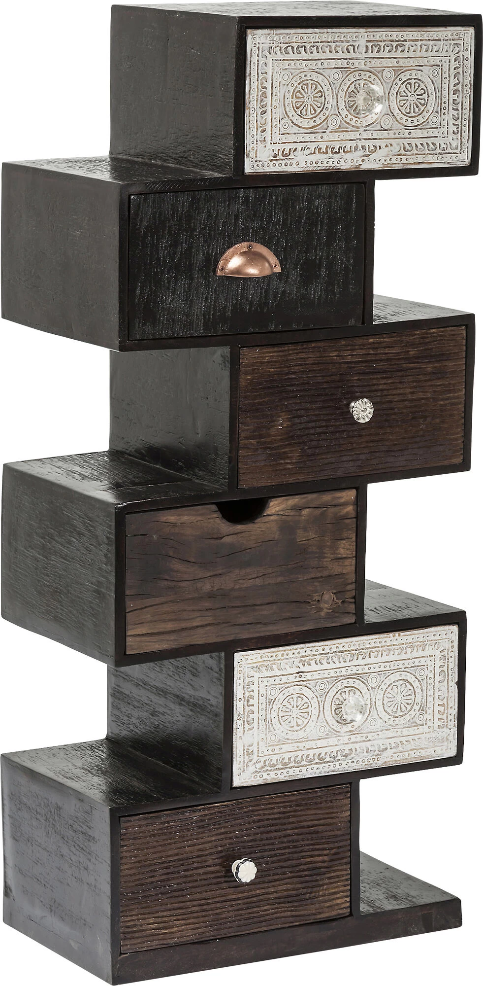 - Schubladenschrank aus Massivholz im kreativen Zick-Zack Design mit vielen liebenswürdigen Details und sechs praktischen Schubkästen