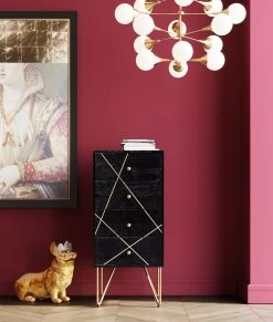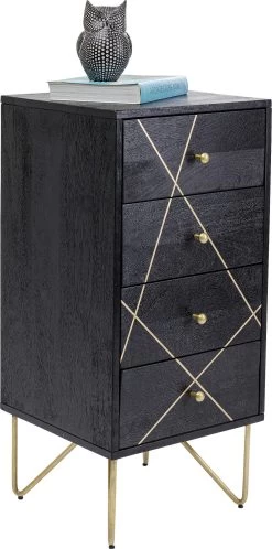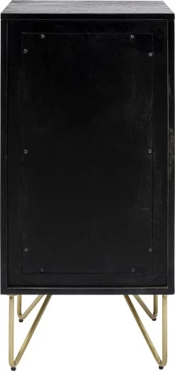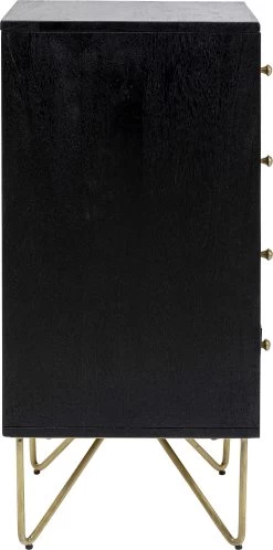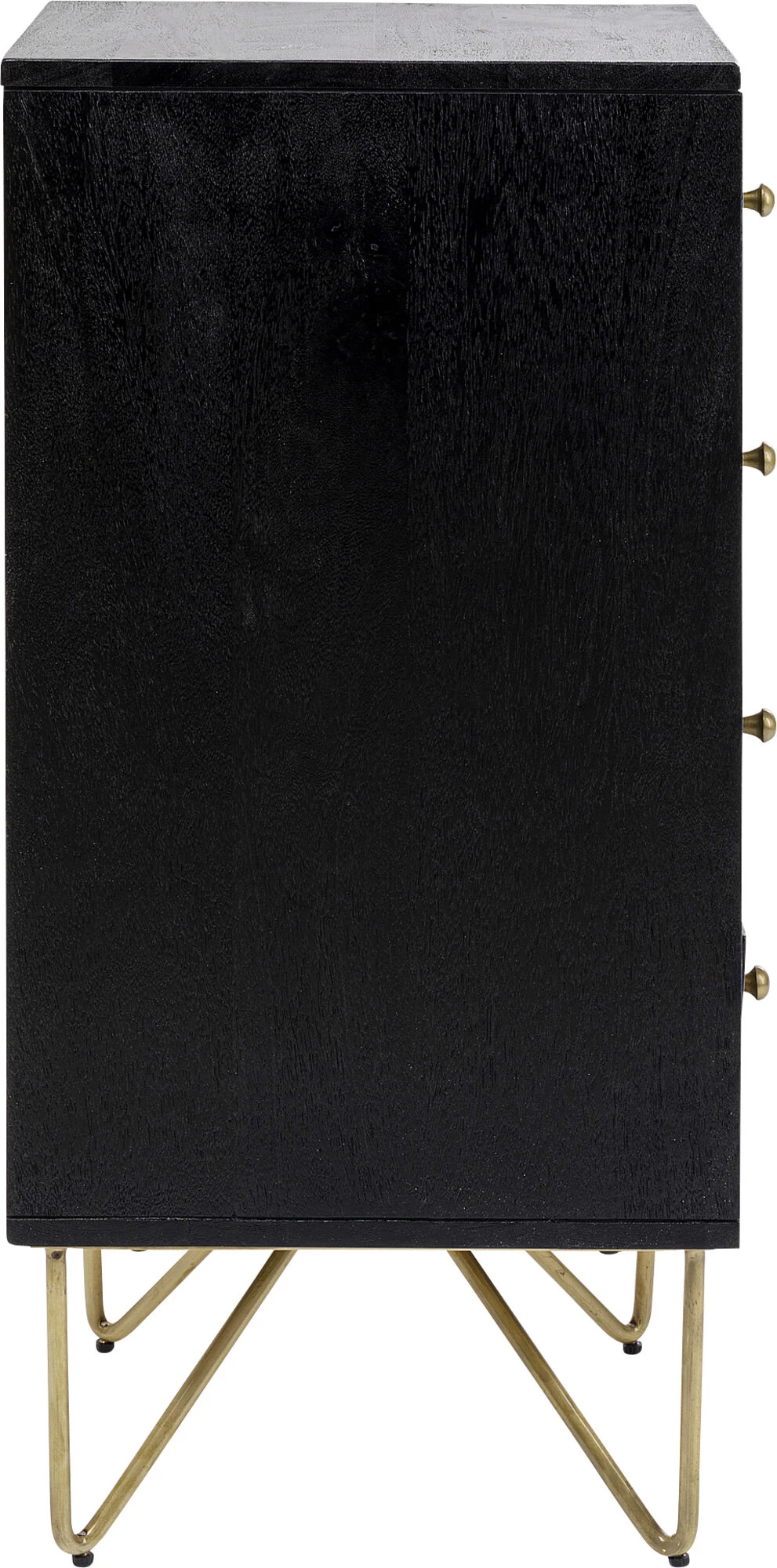 - Schwarz-goldene Kommode aus lackiertem Massivholz mit Hairpin-Beinen