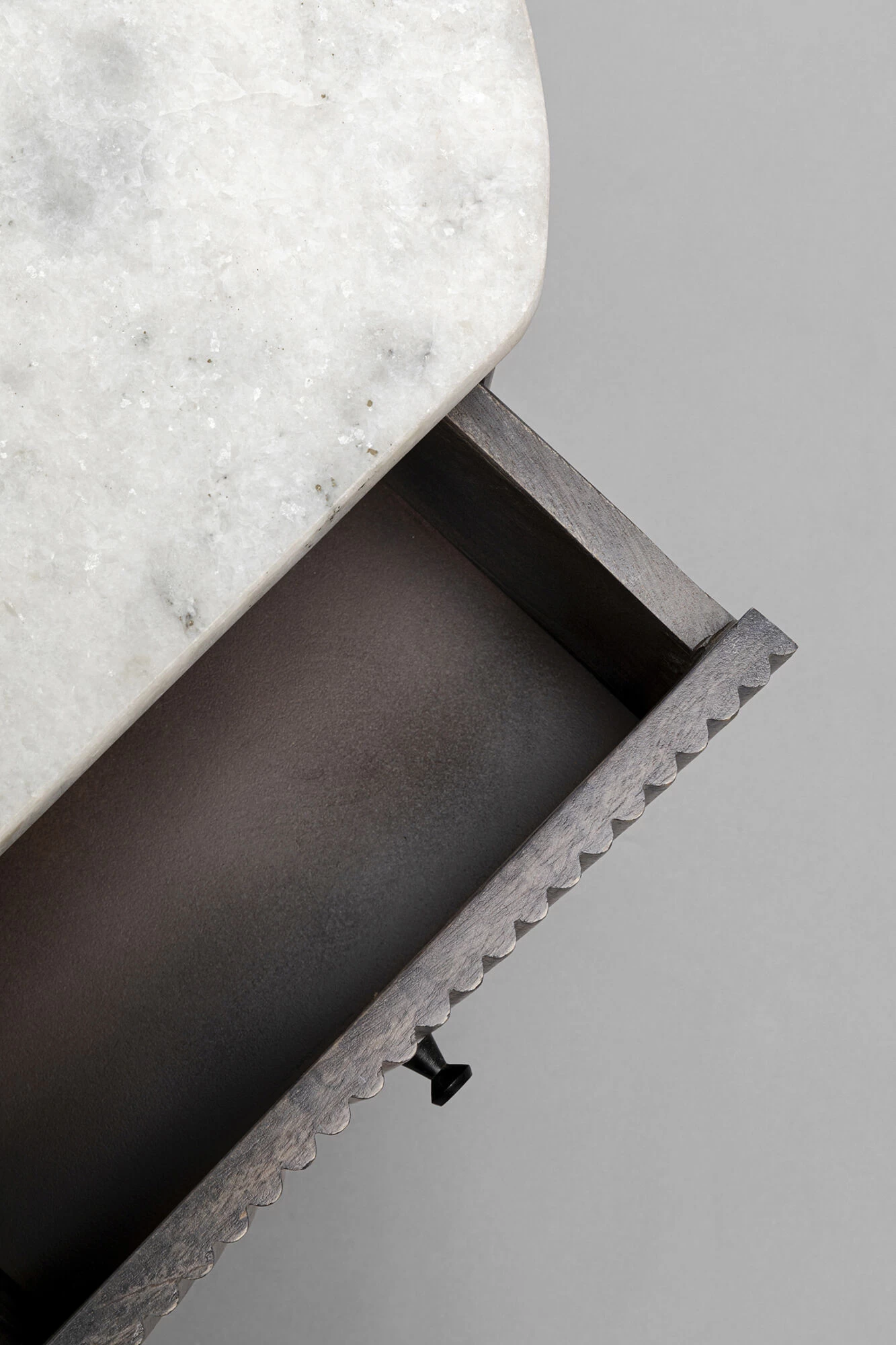 - Die Abdeckplatte aus echtem Marmor verleiht der Holzkommode eine ansprechende ästhetische Note