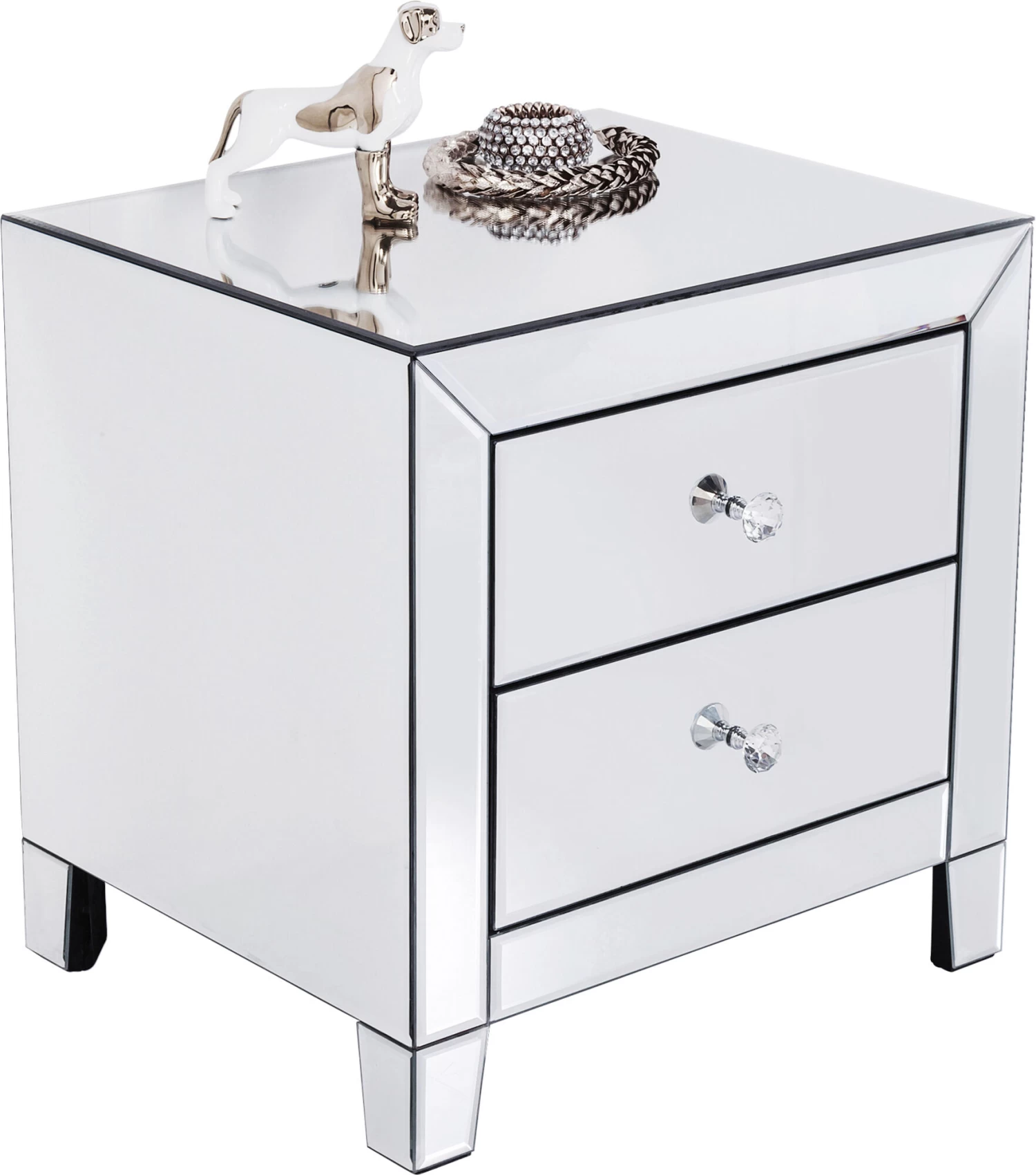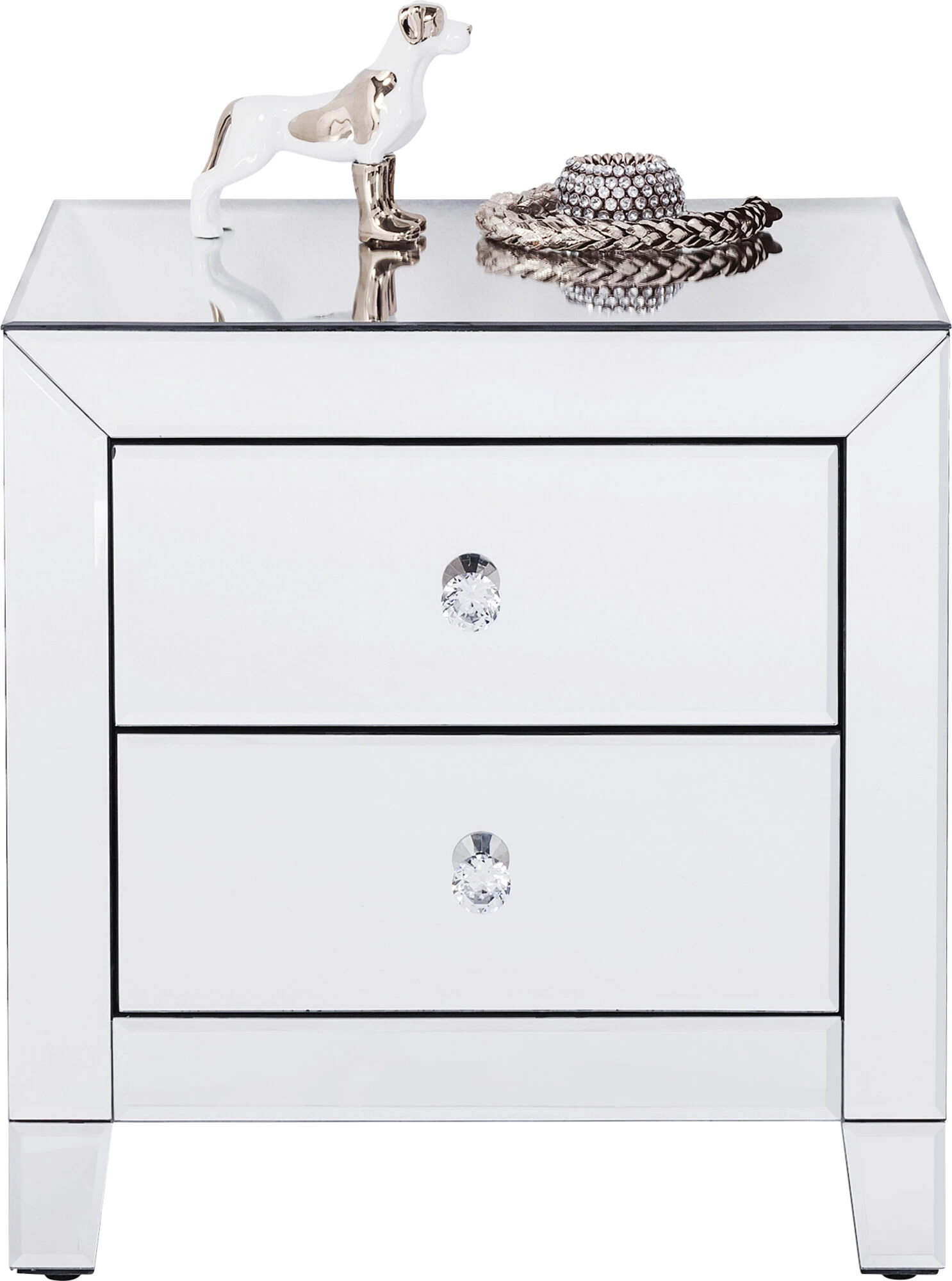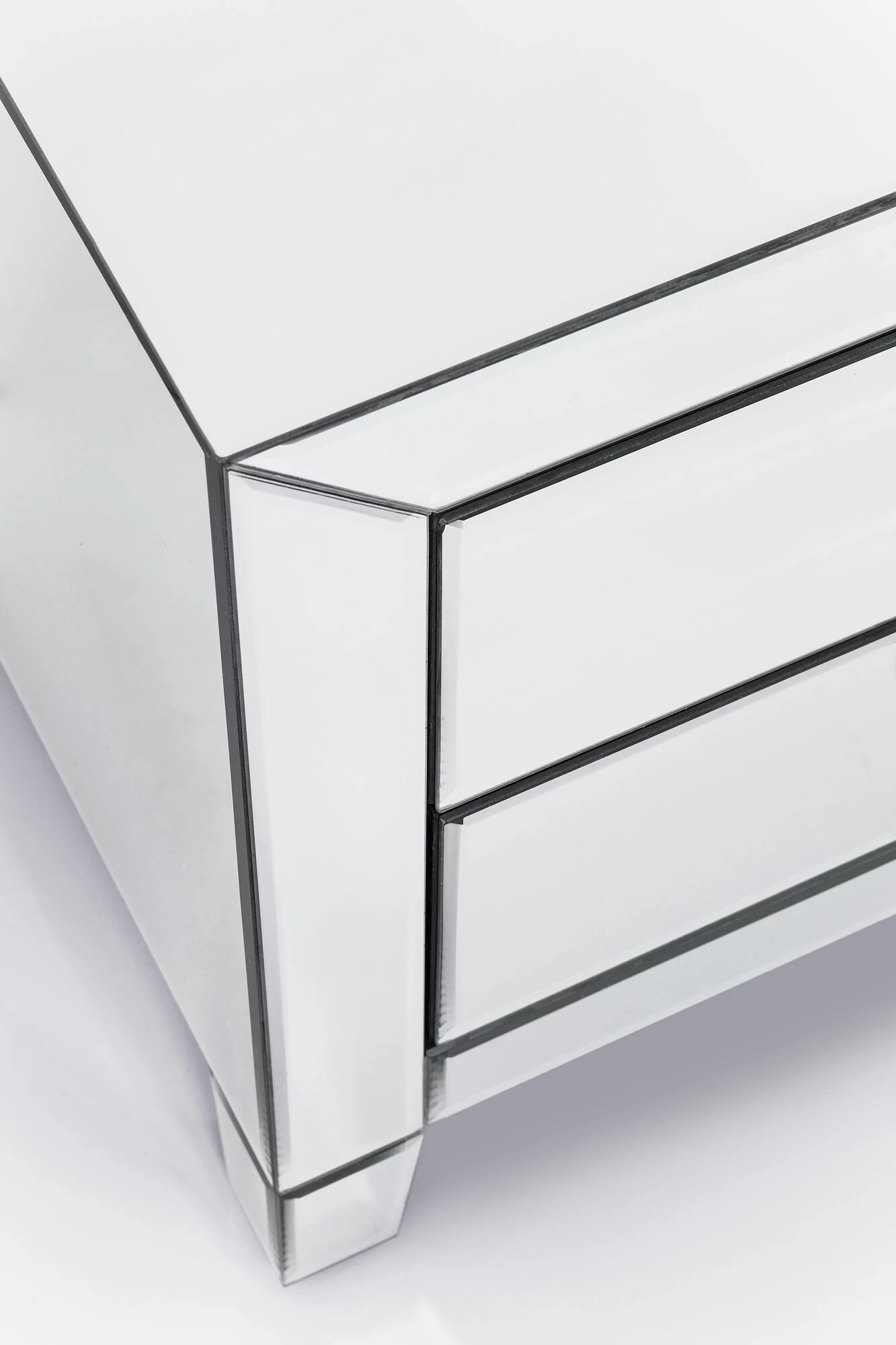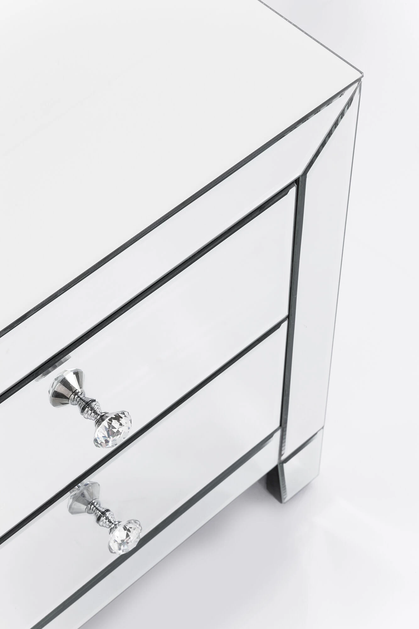 - Kleine, kompakte Kommode – rundum verspiegelt und mit edlen Glasgriffen und damit sehr luxuriös!