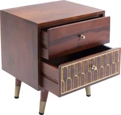 - Der Nachttisch sieht aus wie ein Fundstück vom Vintage-Händler und erobert sofort die Herzen aller Retro-Liebhaber