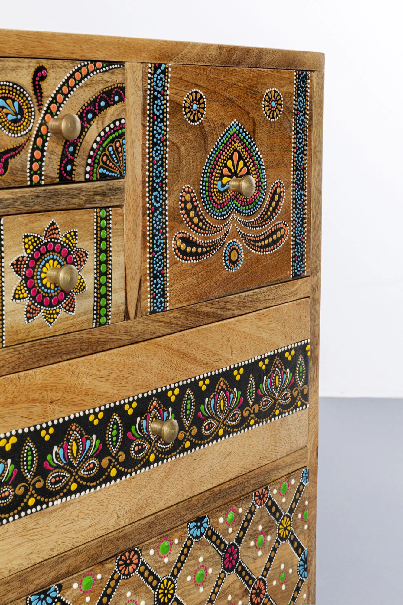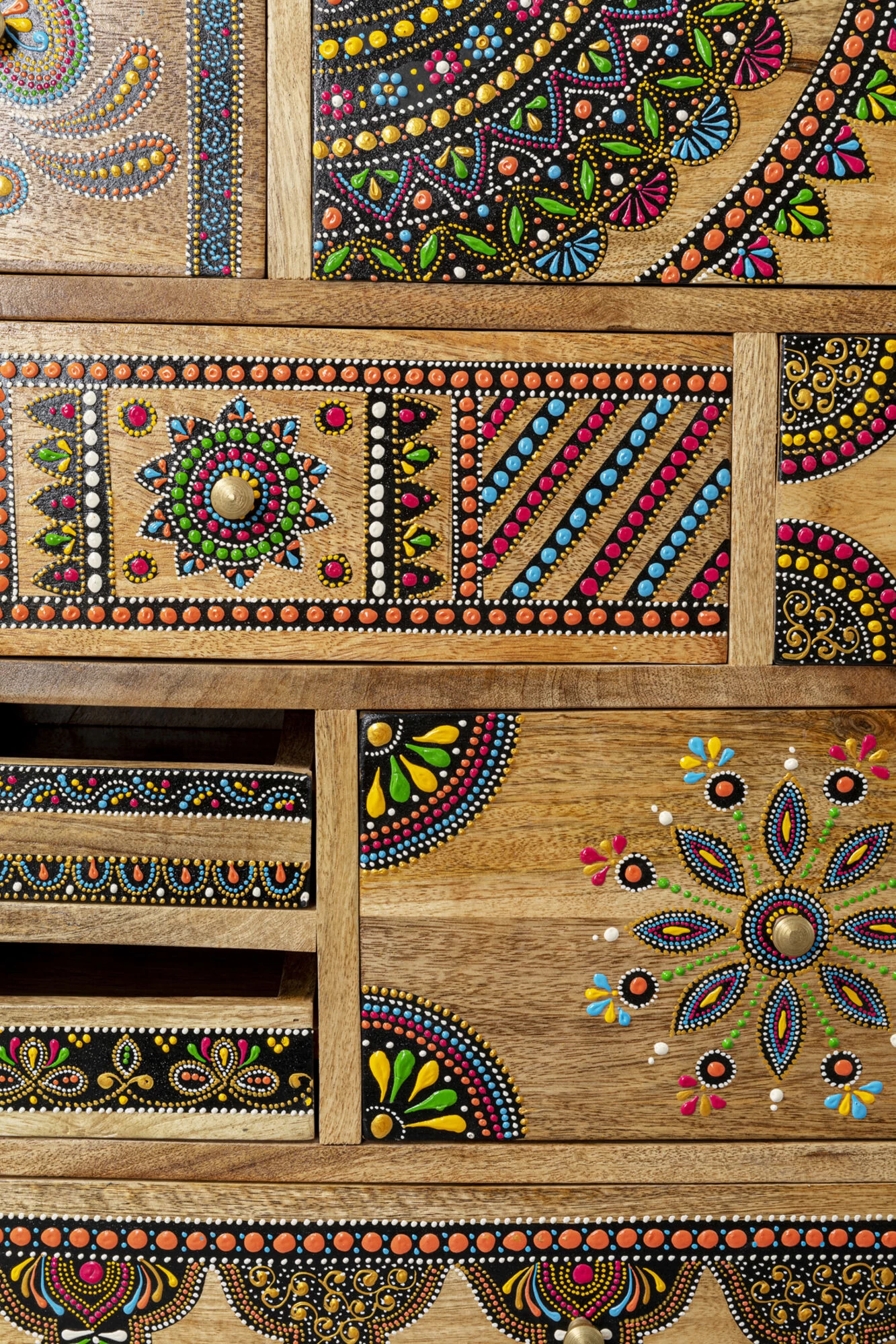 - Die bunten Muster auf den Fronten der SchĂĽbe sind liebevoll von Hand gemalt