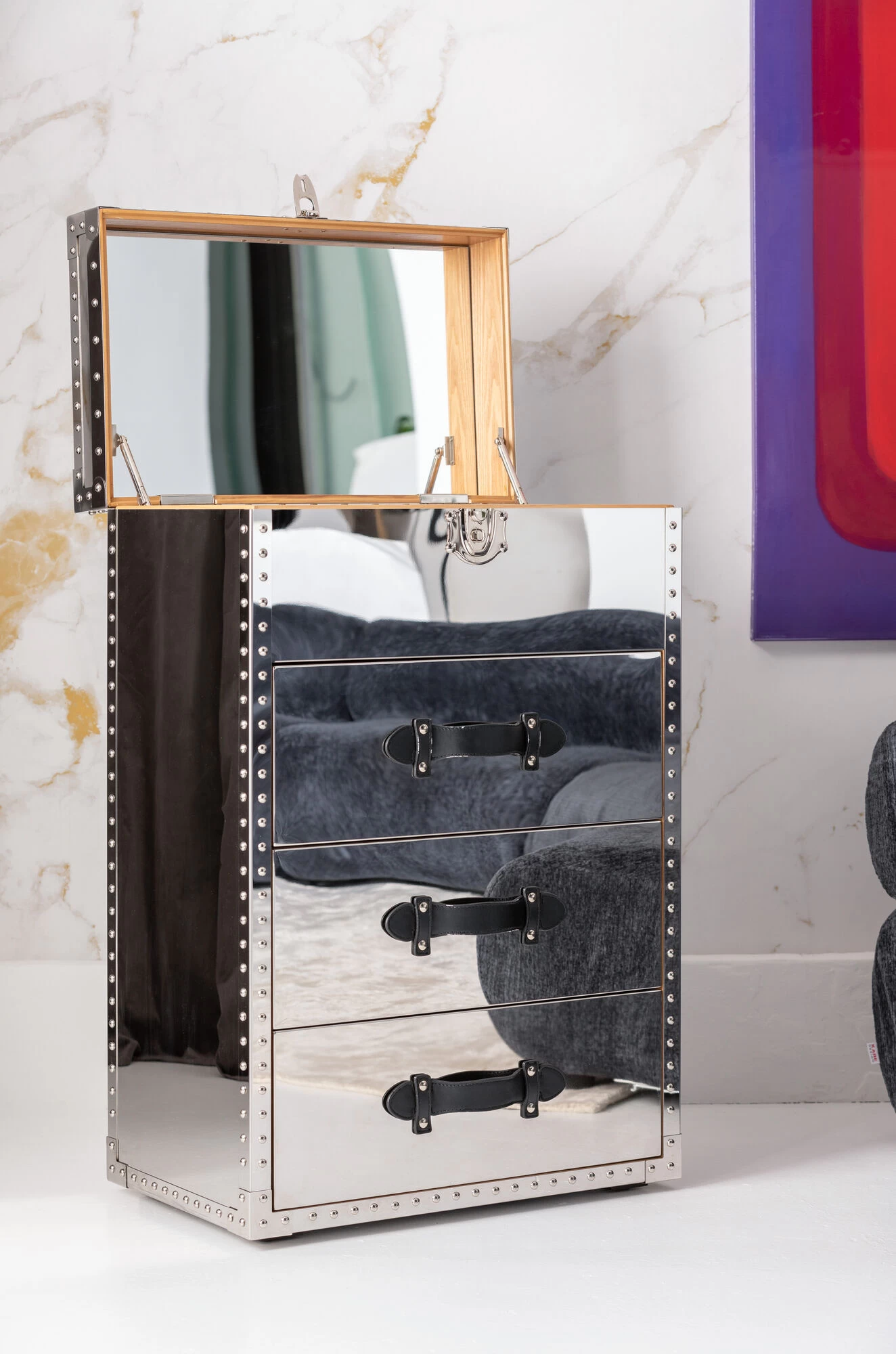 - Kleiner Schminkschrank mit lackiertem Edelstahl verkleidet, 100 x 65 x 40 Zentimeter (H/B/T)