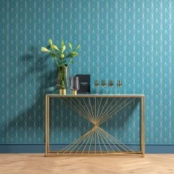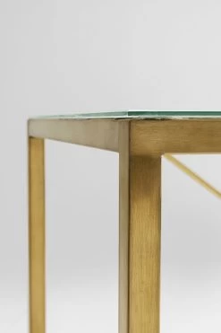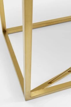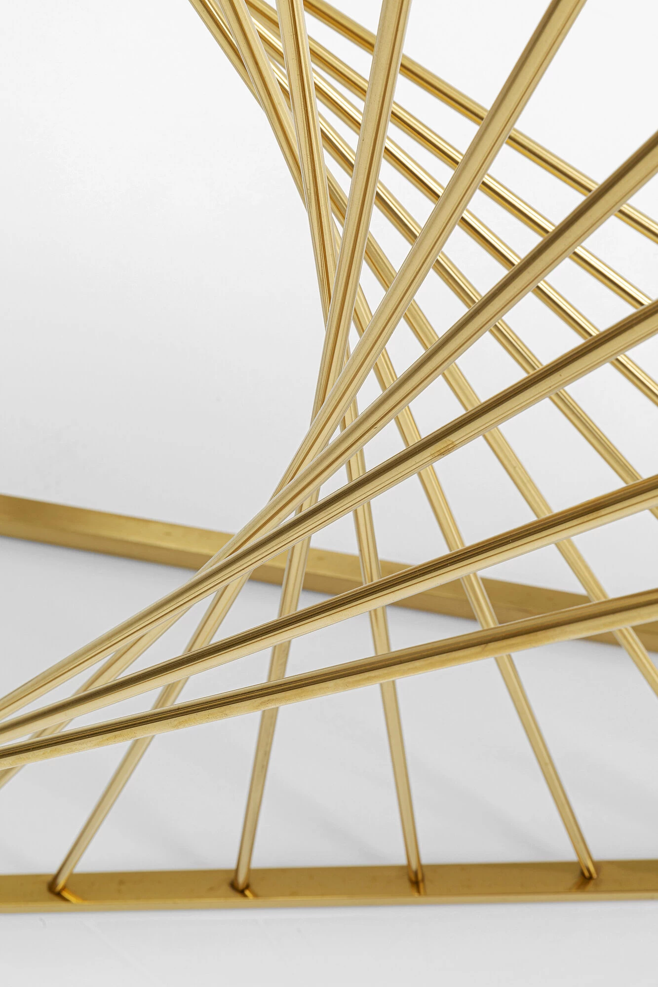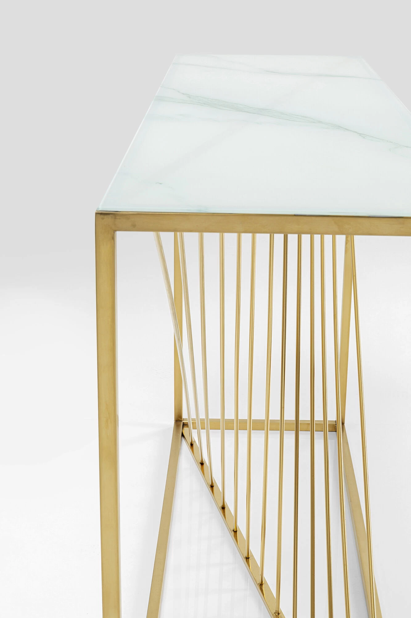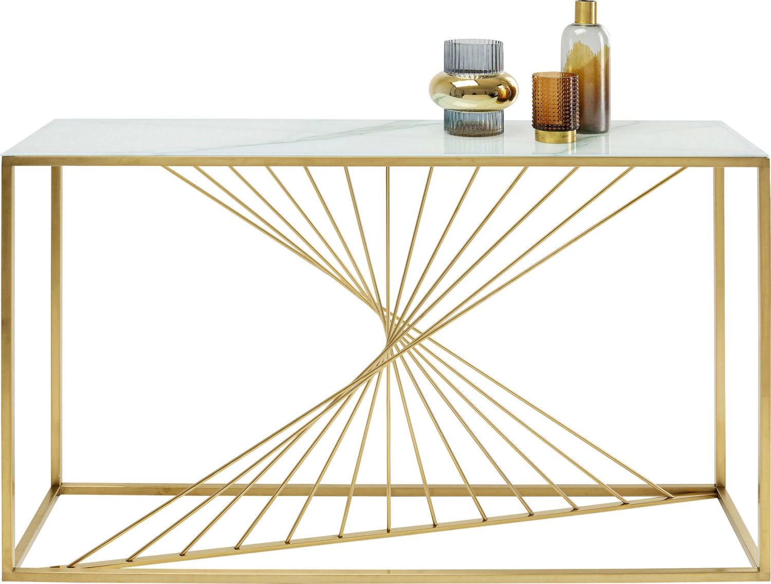 - Goldfarbene Konsole mit exklusivem Gestell und einer Glasplatte in Marmor-Optik