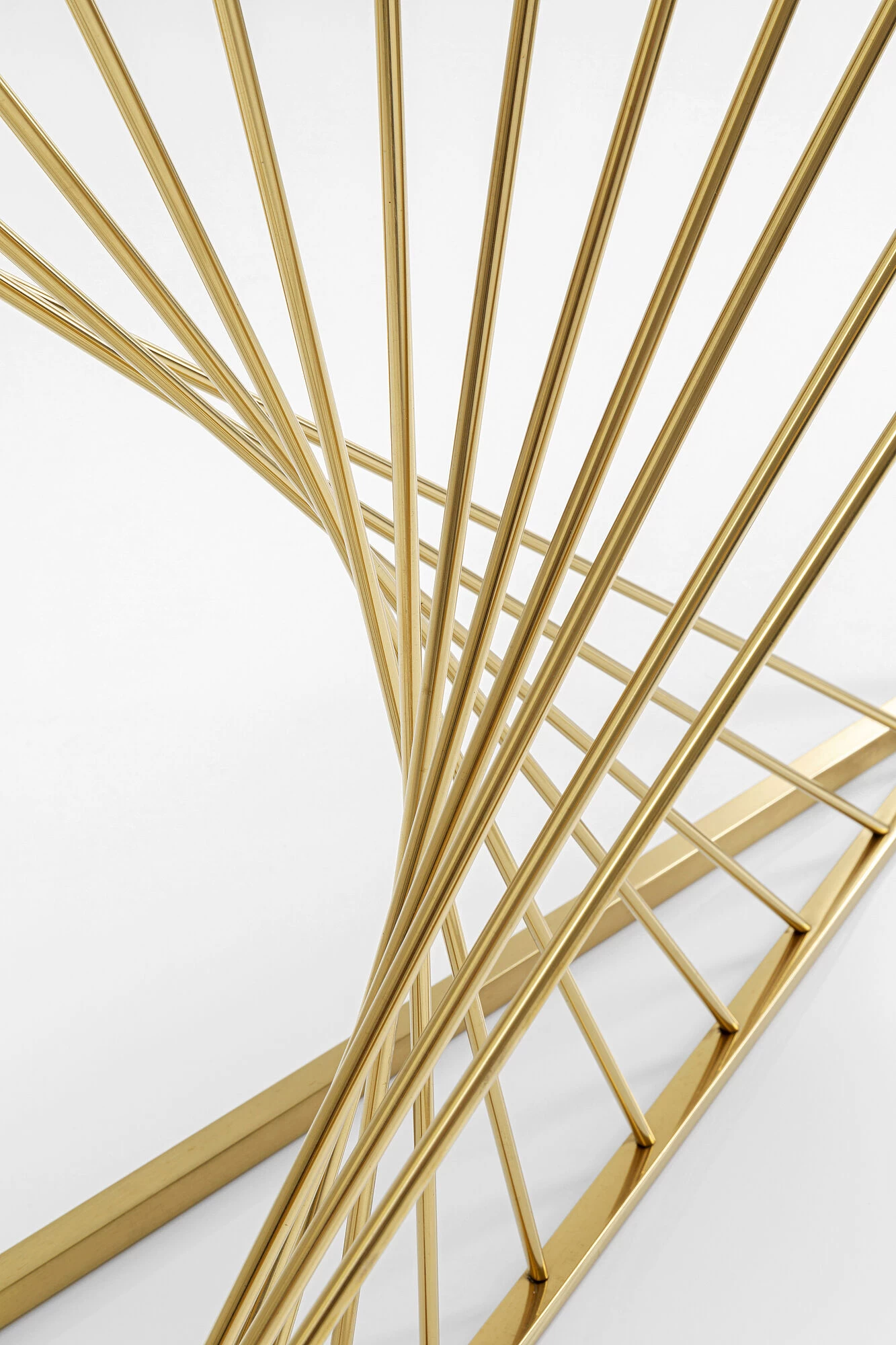 - Der handgefertigte Unterbau des Konsolentischs spielt mit dreidimensionalen Perspektiven