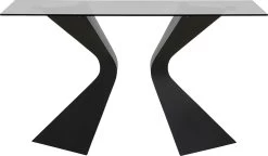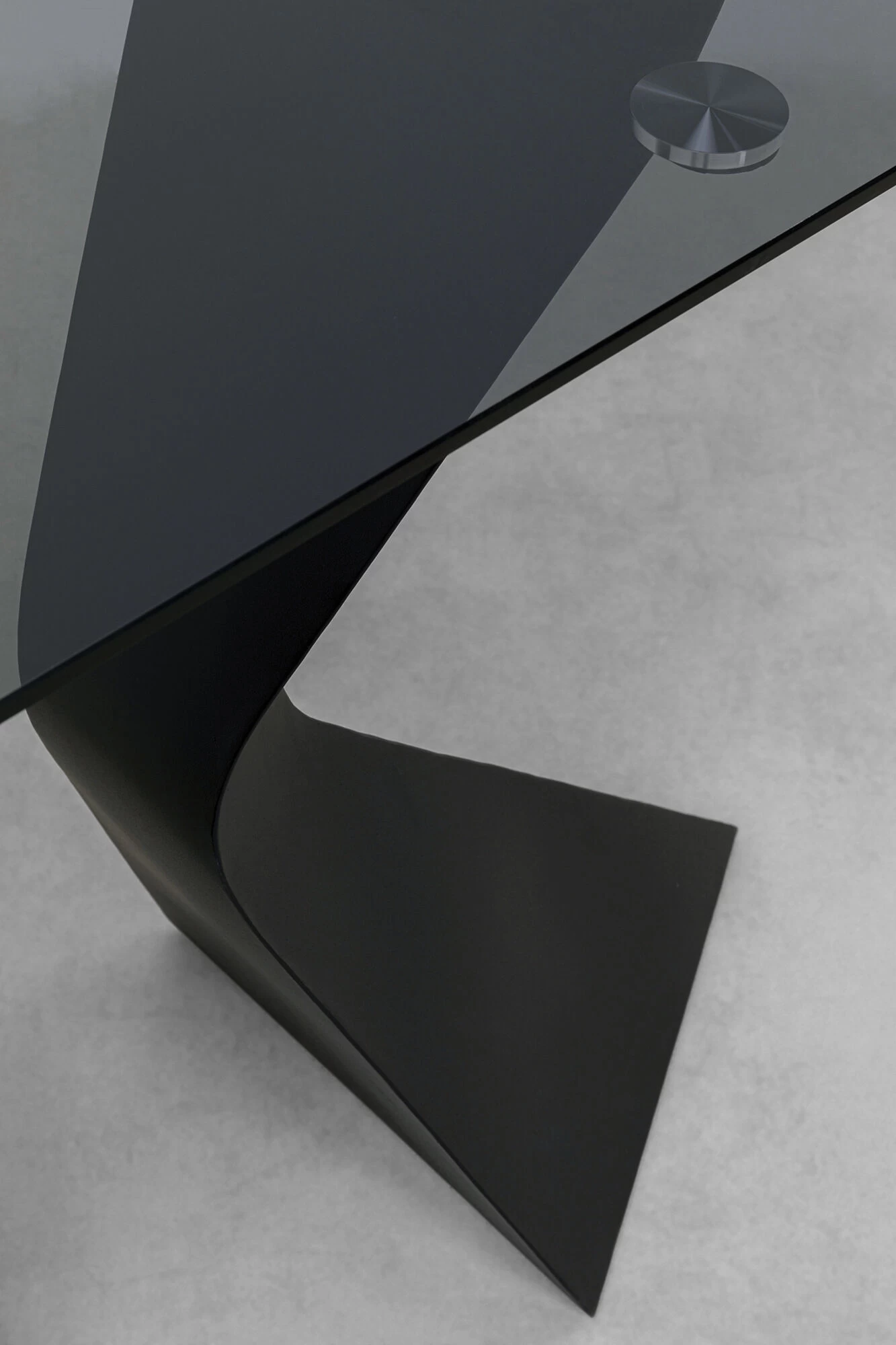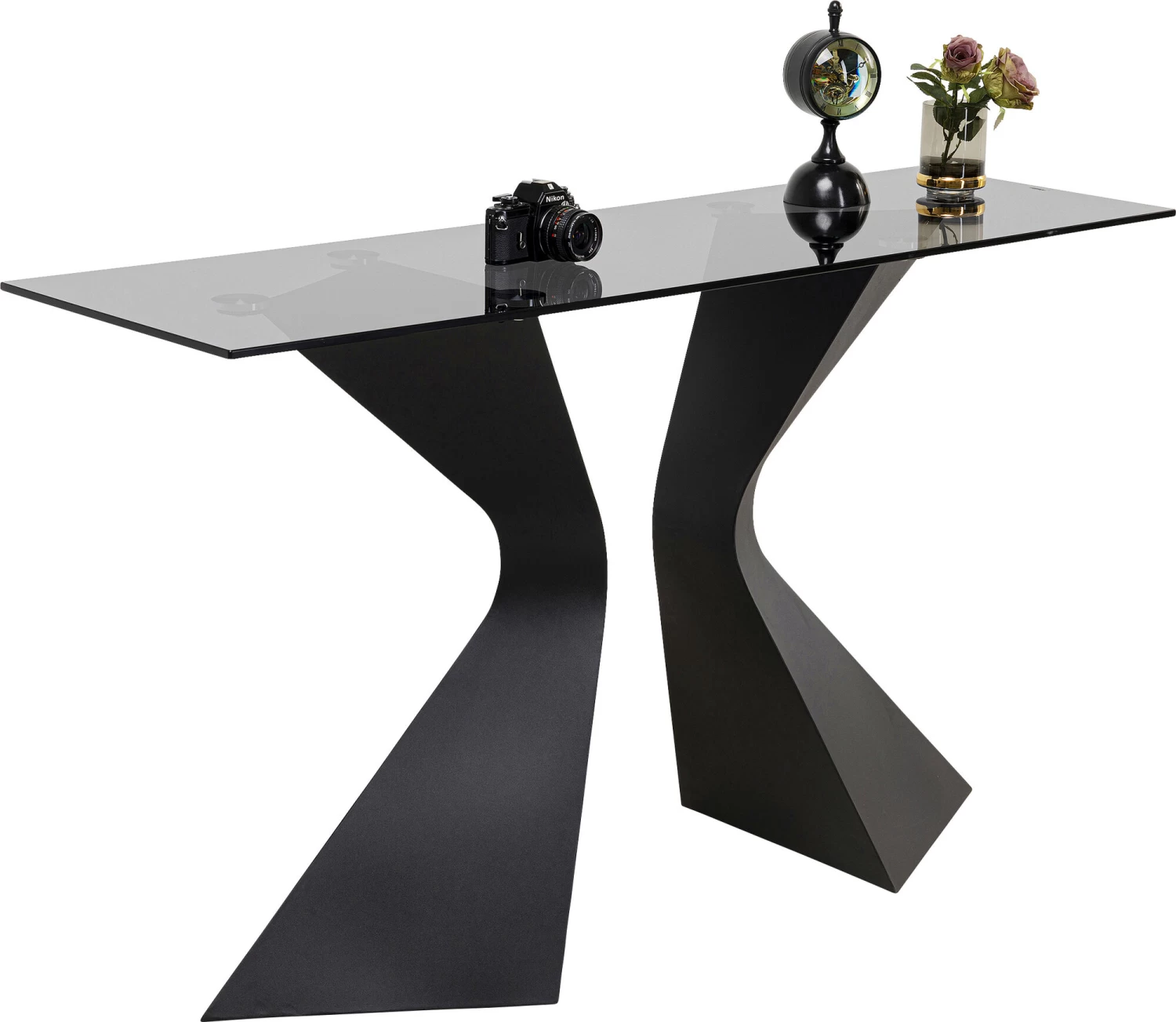 - Modern: Designer-Möbel mit rauchgrau gefärbter Glasplatte und skulpturalem Gestell ganz in Schwarz