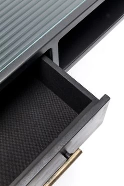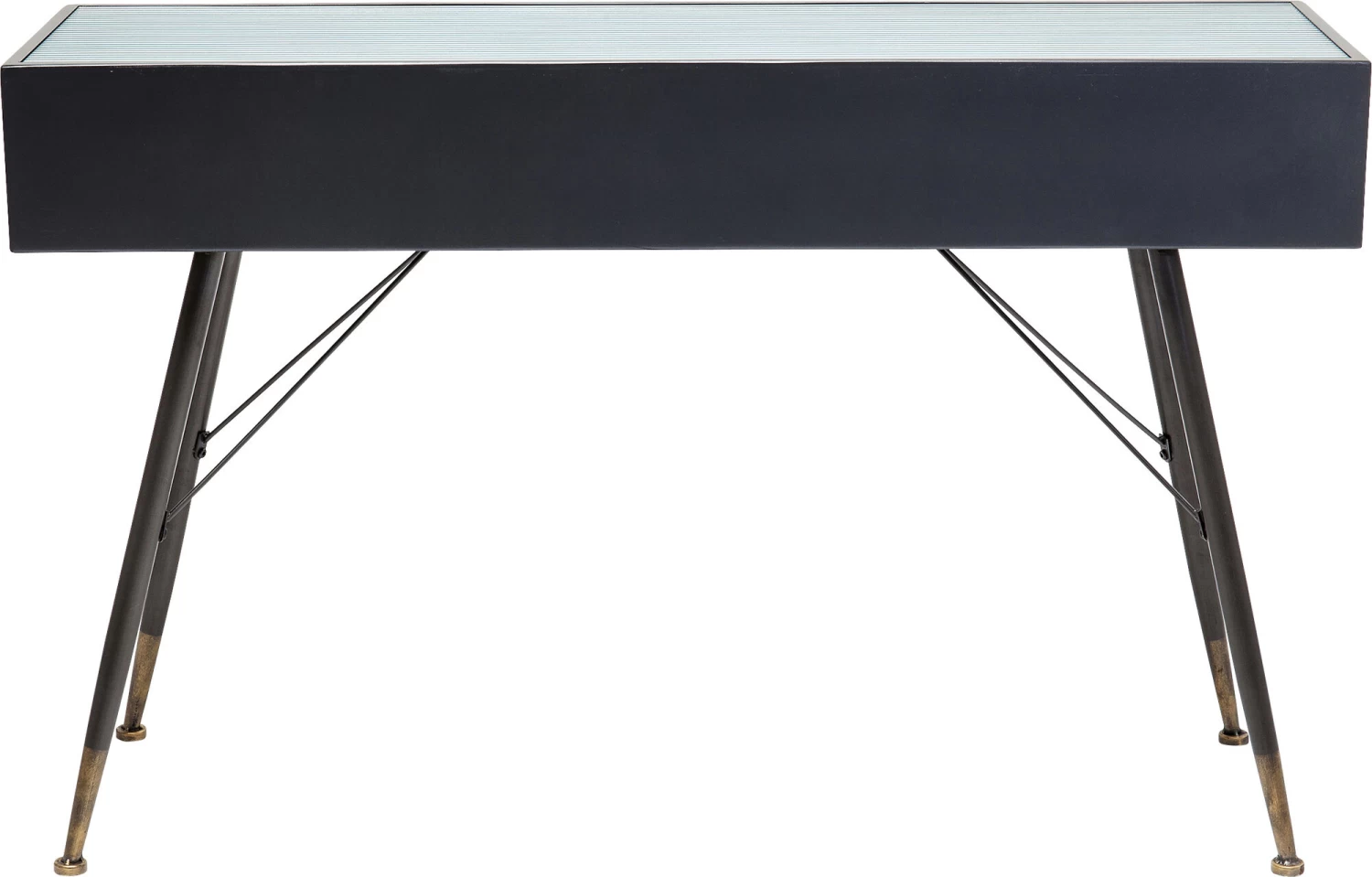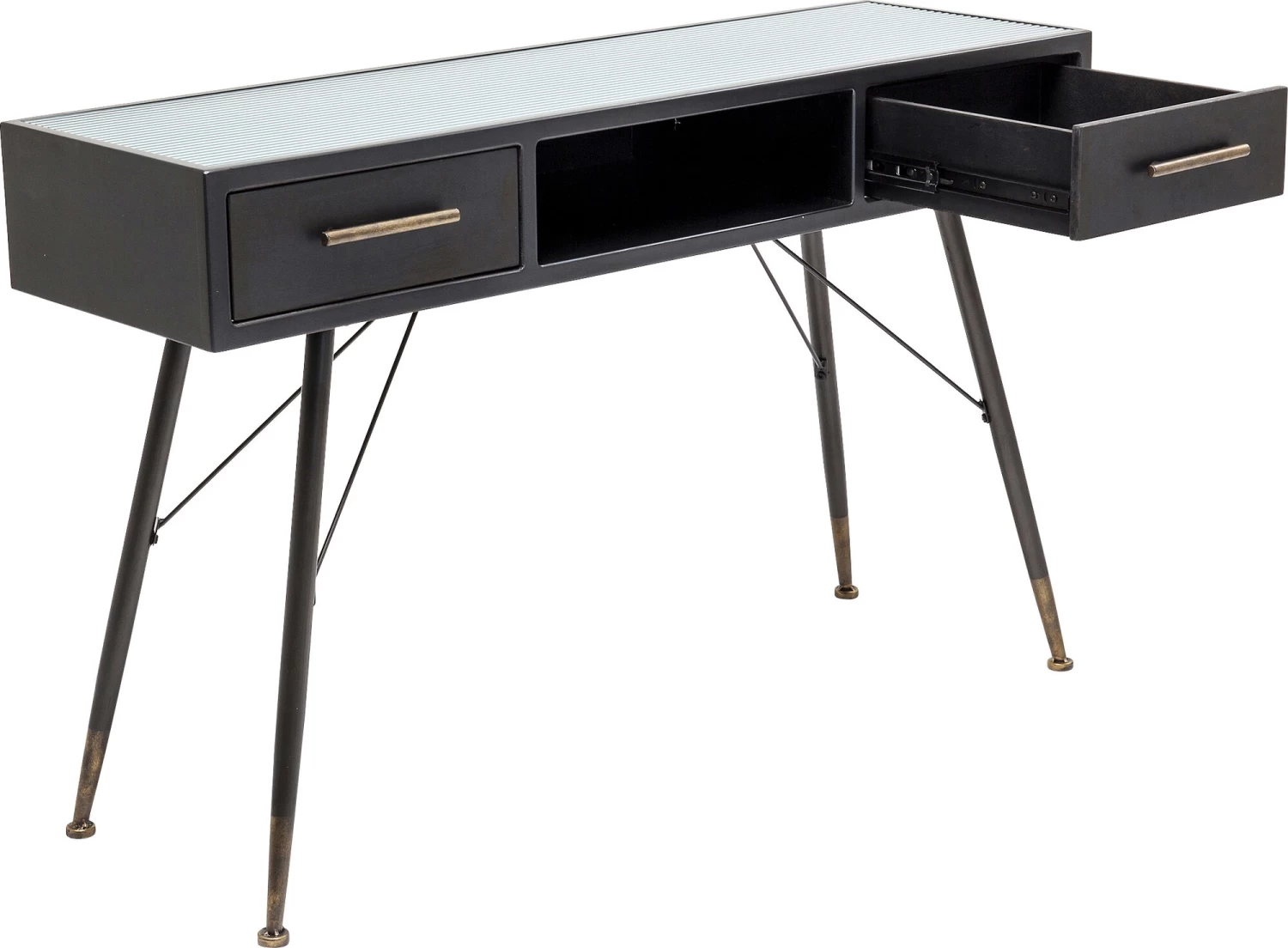 - LeichtfĂĽĂźige, schwarze Konsole im Understatement-Look, die gerne auch als Laptop-Tisch dient