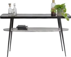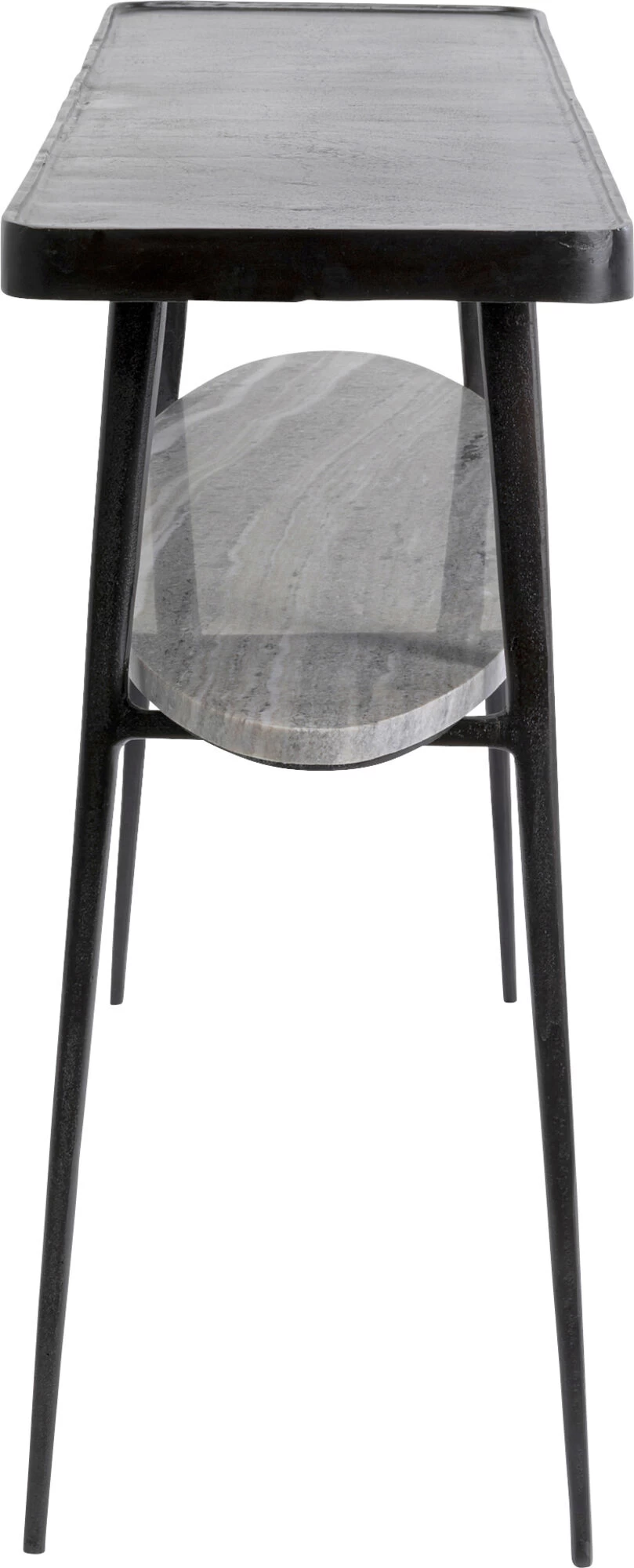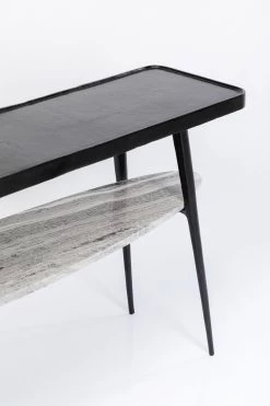 - Schwarze Konsole aus Metall und Marmor mit zwei Ablageflächen, 81 x 135 x 35 Zentimeter (H/B/T)
