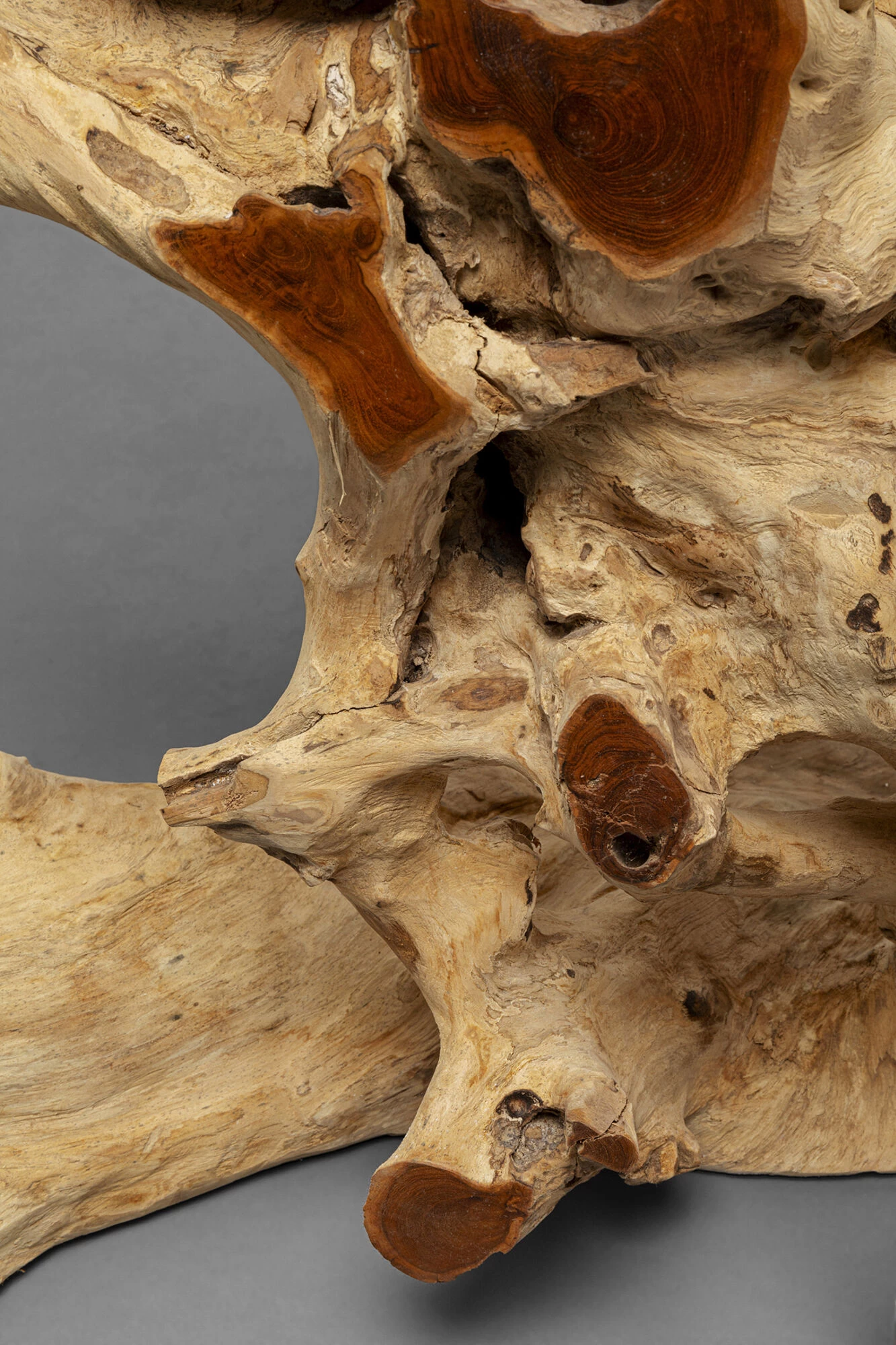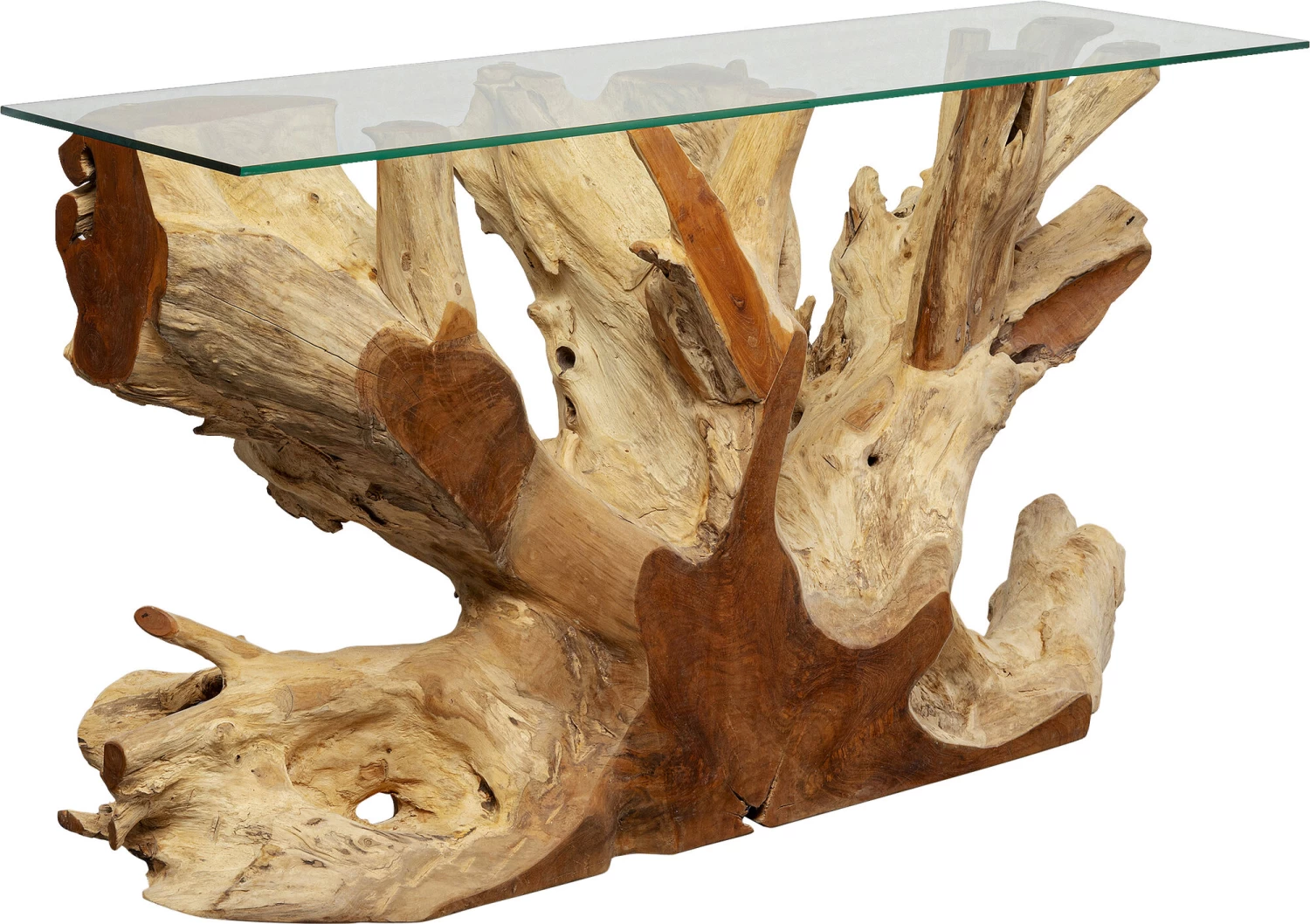 - Das Wurzelgestell und die Glasplatte als konträre Kombi machen den Konsolentisch zum Showpiece im Flur oder Wohnzimmer