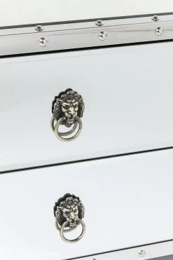 - Für die antike, herrschaftliche Note sorgen die messingfarbenen Löwenkopf-Griffe und dekorativen Nietendetails