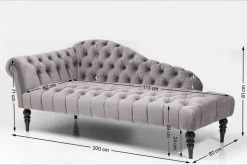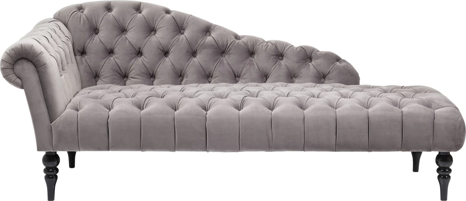 - Salon-Style: luxuriöse Récamiere mit edler Kapitonierung, grauem Bezug in Samtoptik und schwarzen Beinen aus Buchen-Massivholz