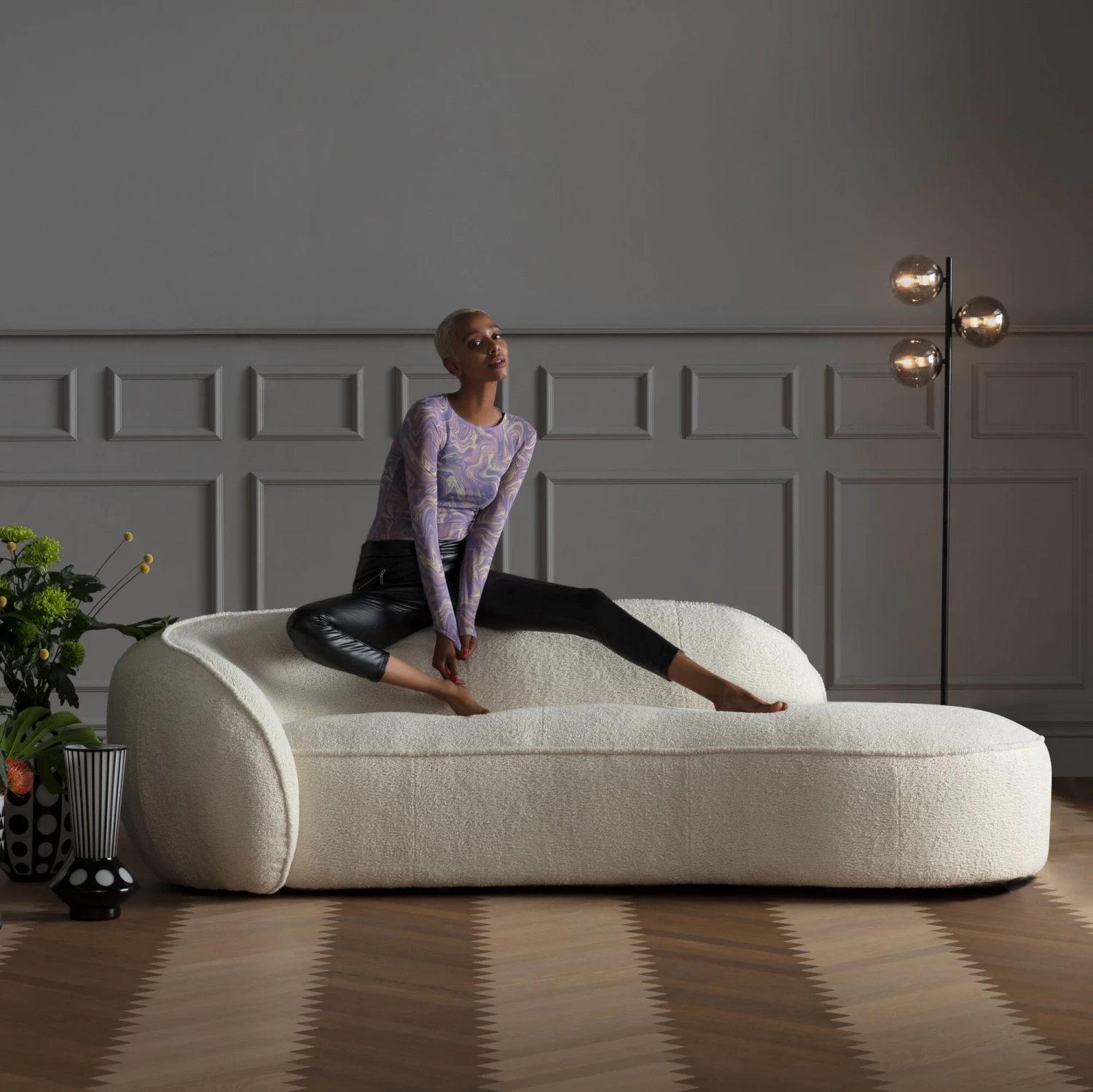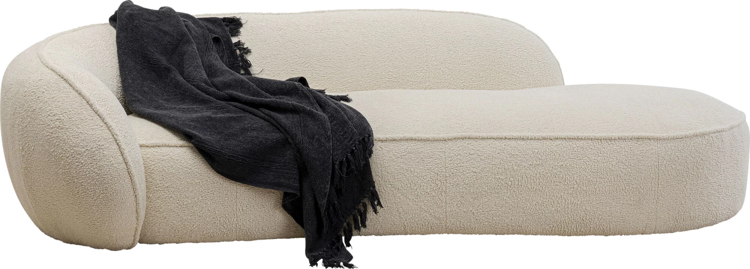 - Trend-Farbe Creme: Der neutrale Ton der Chaiselongue macht jedes Umstyling mit Kissen und Decken mit