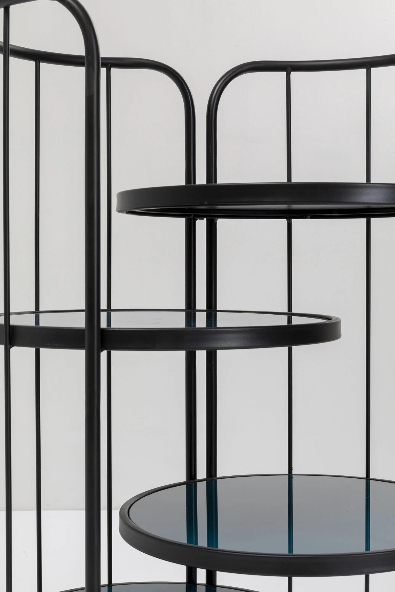 - Rundes, raffiniertes Stahlregal, das sich zusammenschieben und auseinanderziehen lässt