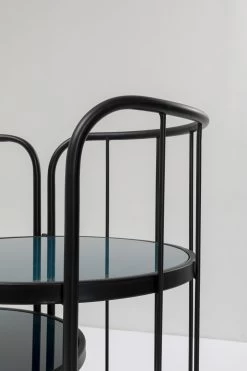 - Schwarz lackierter Stahl und petrolfarbene Glasplatten machen Bandeja pflegeleicht. Darum macht es sich gut im Bad fĂĽr die Schminksachen