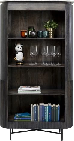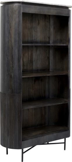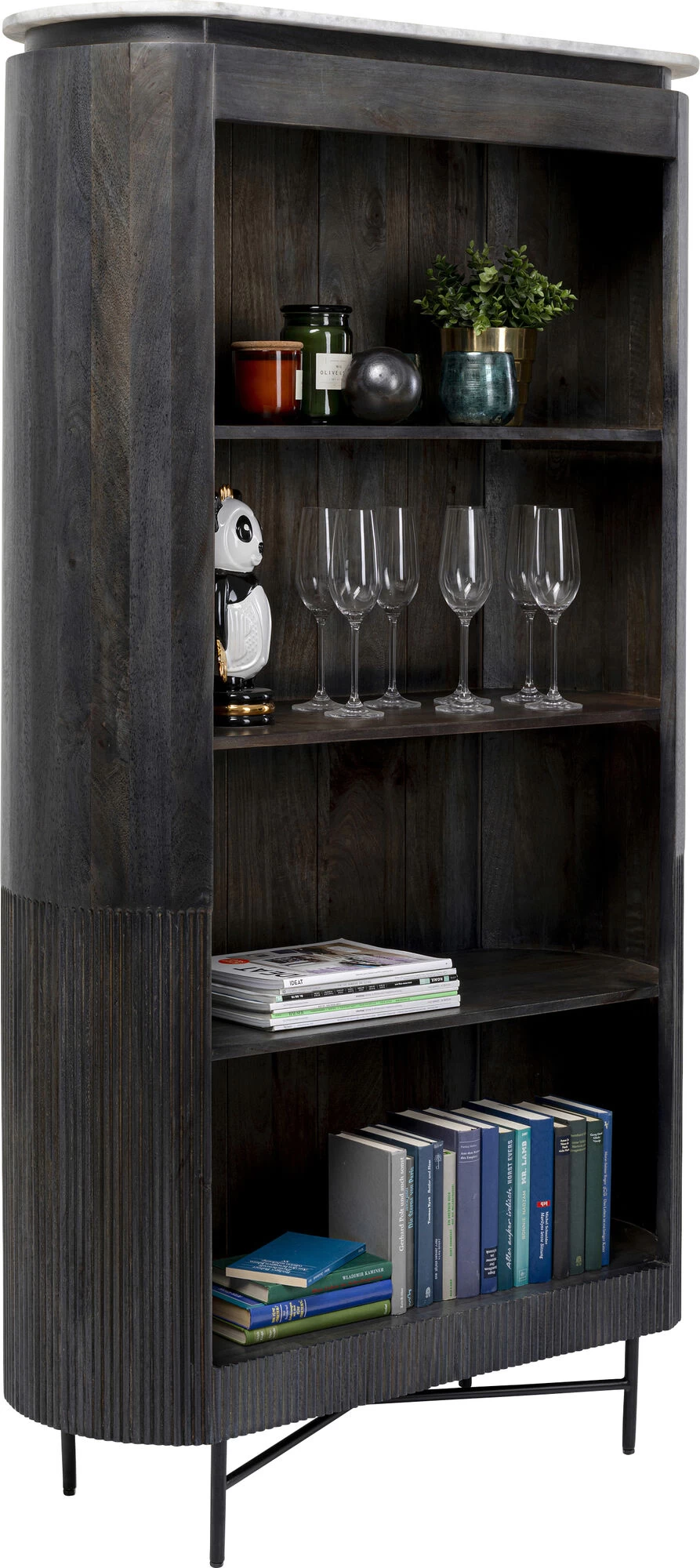 - Designer-Regal in Rauch-Schwarz aus Holz mit Marmor-Detail, 190x100x40 Zentimeter (H/B/T)