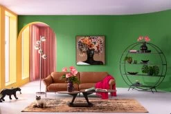 - Stahlregal mit dem Charakter eines Objekts, in dem sich Vasen, Geschirr, Gläser und Zimmerpflanzen dekorativ präsentieren lassen