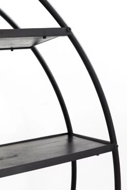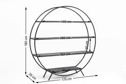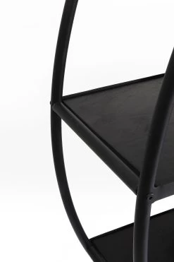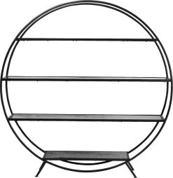 - Großes, rundes Regal aus schwarz lackiertem Stahl mit Regalböden aus Massivholz