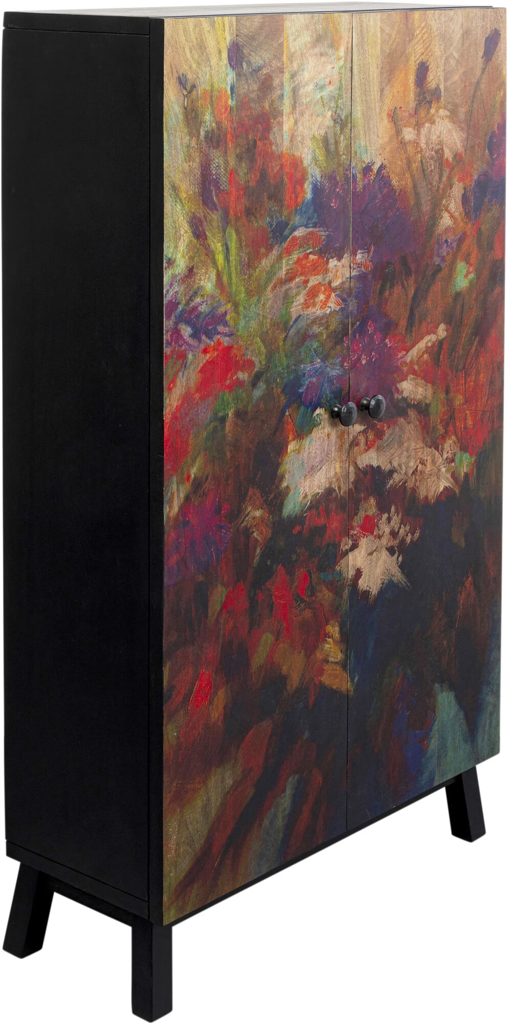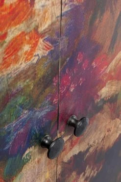 - Florale Motive und fantasievolle Pflanzenwelten verleihen dem Holzschrank eine poetische, fast träumerische Note