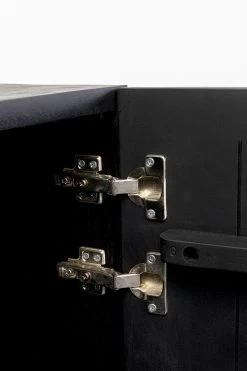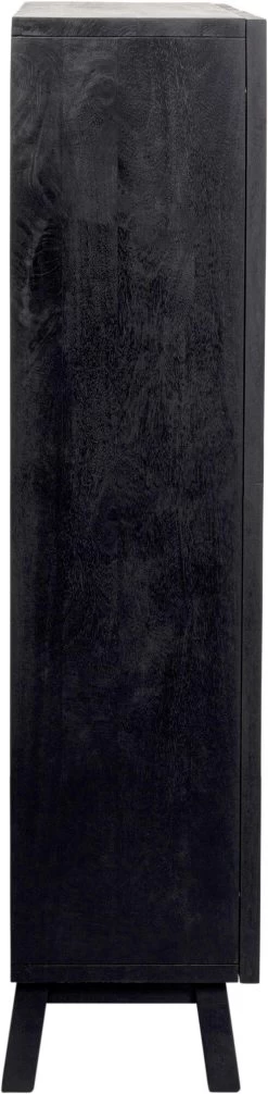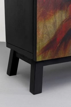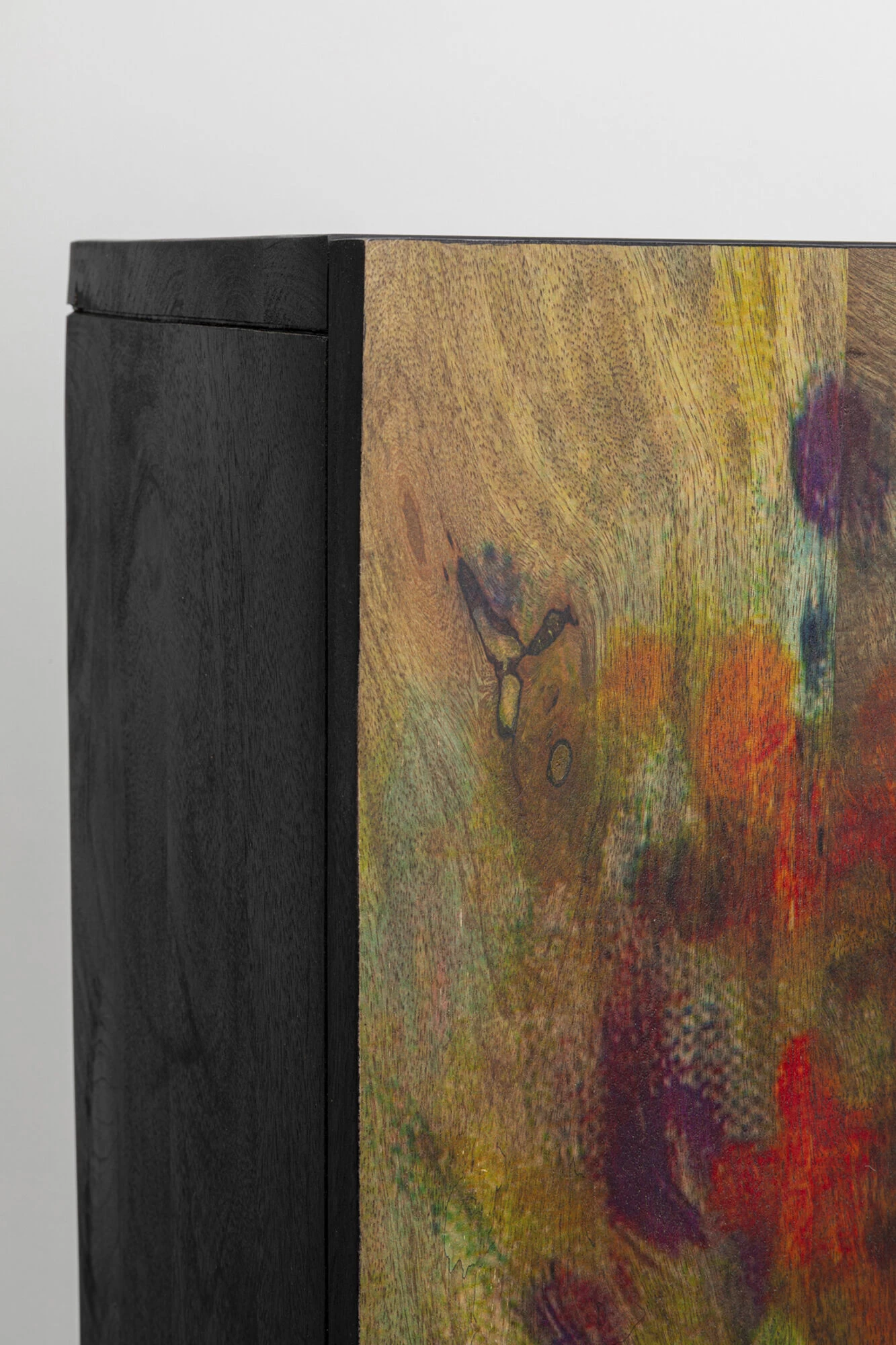 - Rechteckiger, kleiner Schrank mit schwarzem Korpus aus Mangoholz und einer Front mit Pflanzen- und Blumenmotiven