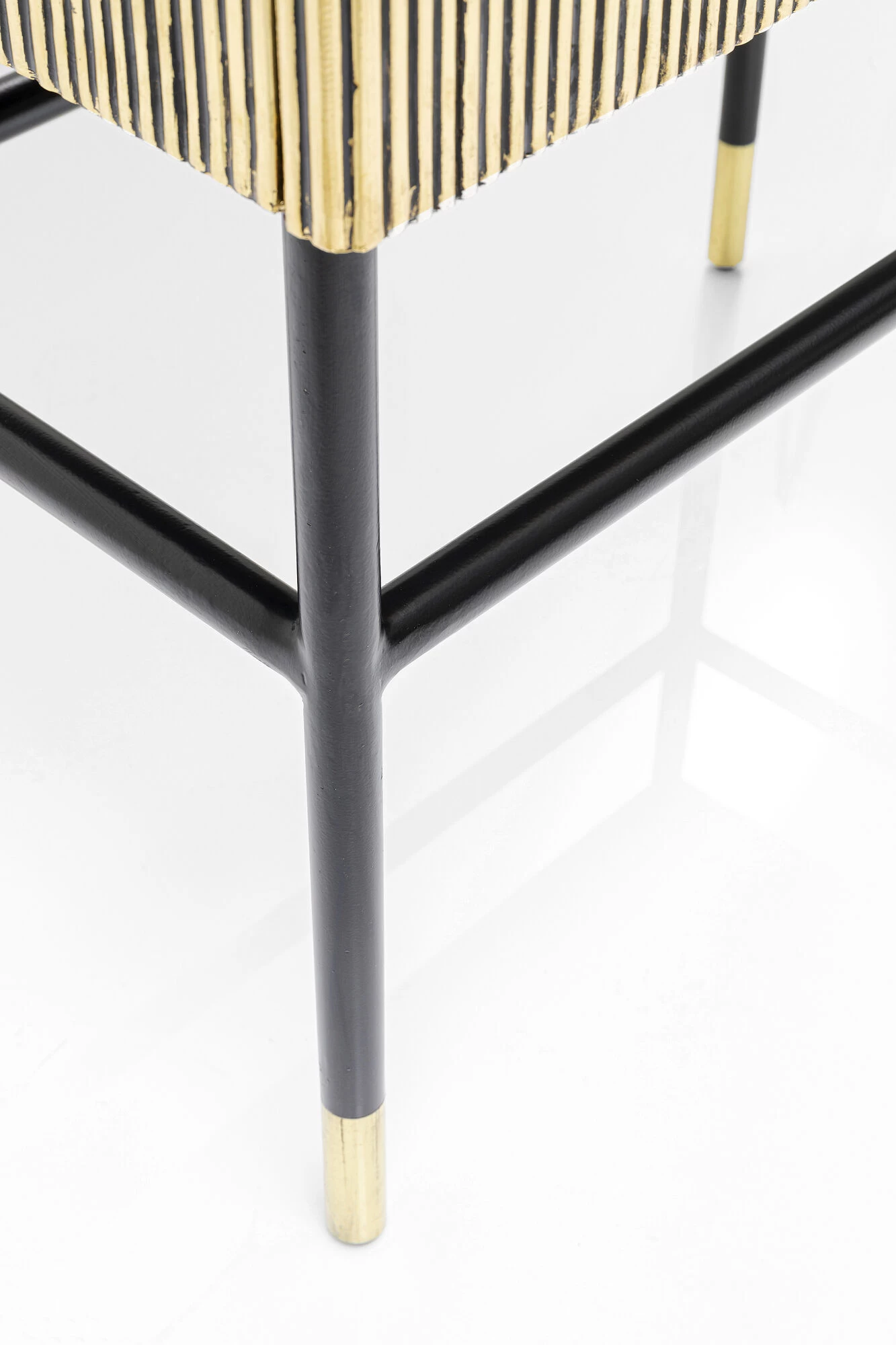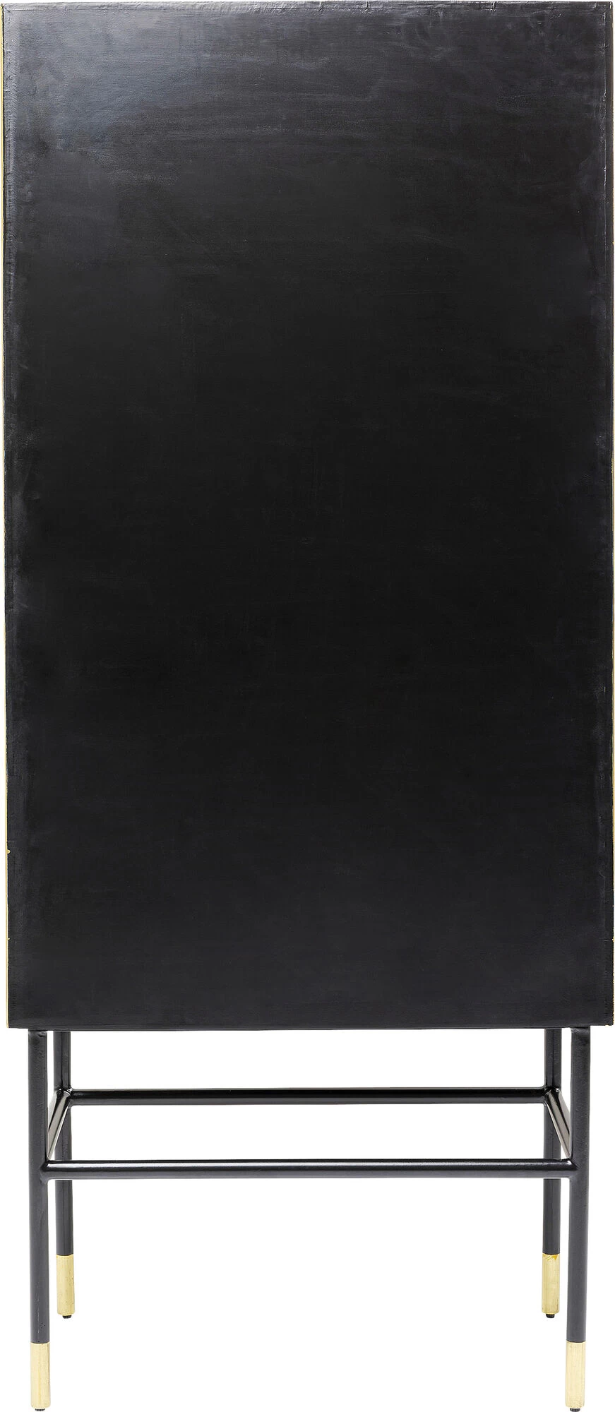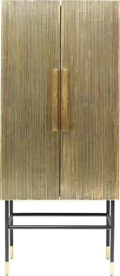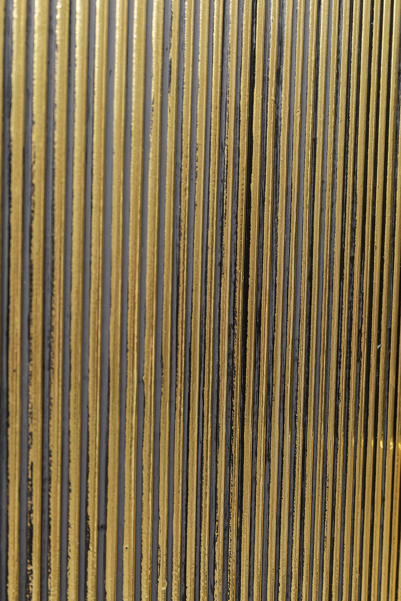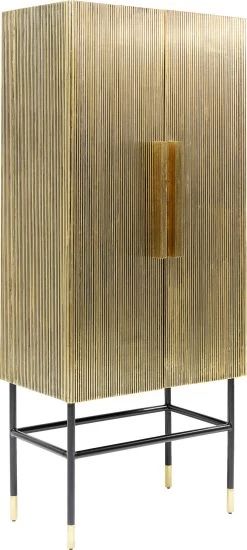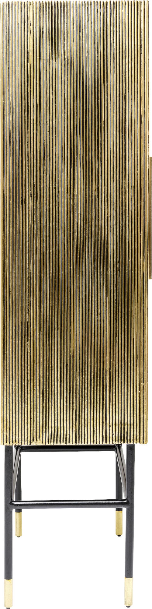 - Gradliniger und nobler, hoher Schrank mit Fronten und Seitenteilen in Gold und Rillenstruktur in der Kontrastfarbe Schwarz