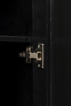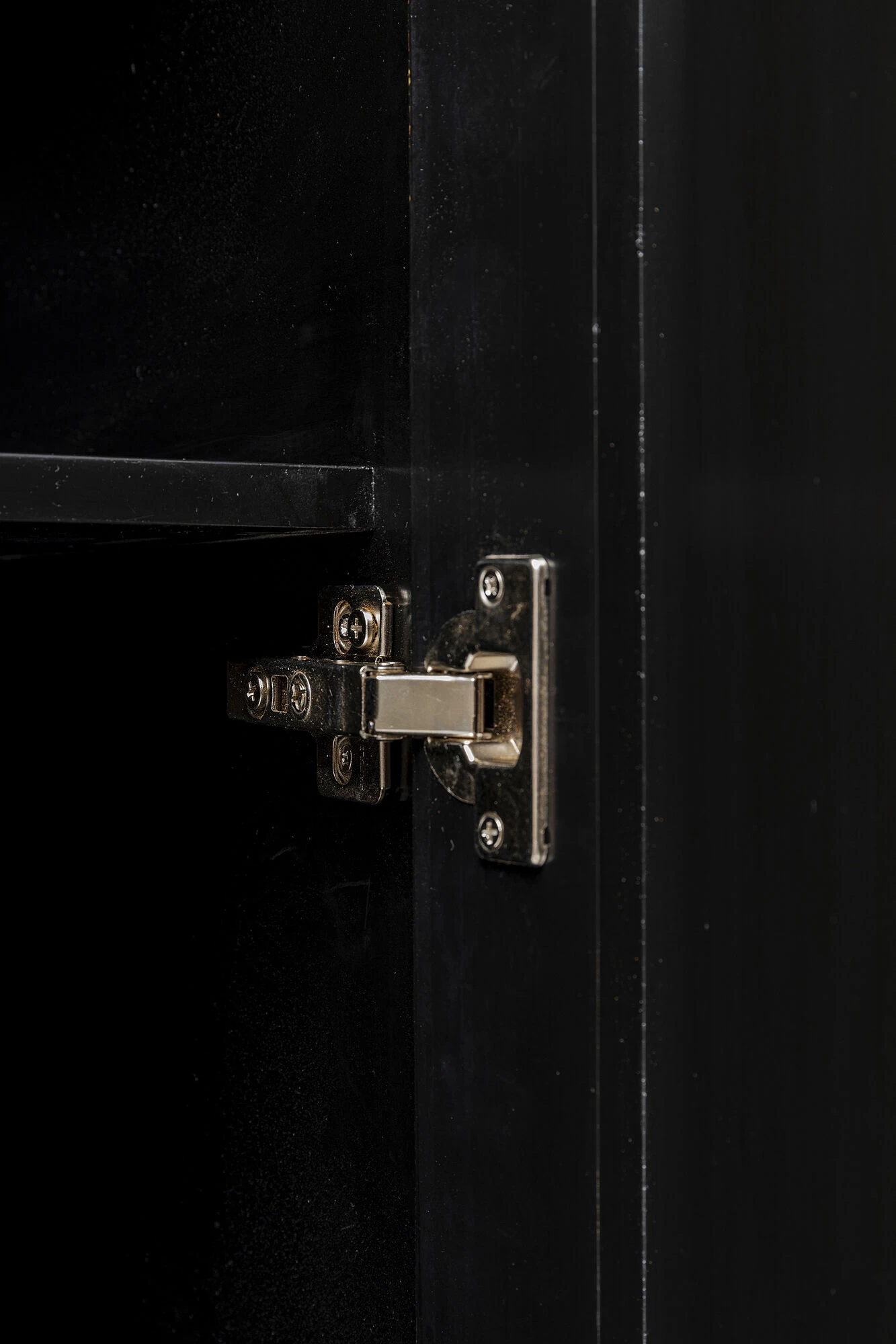 - Vier fixierte Ablageböden im schwarzen Inneren des Schrankes bieten jede Menge Stauraum