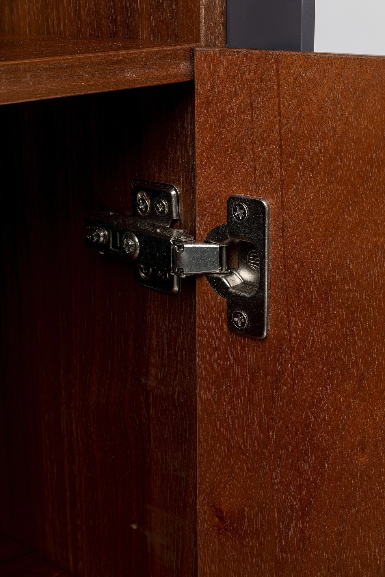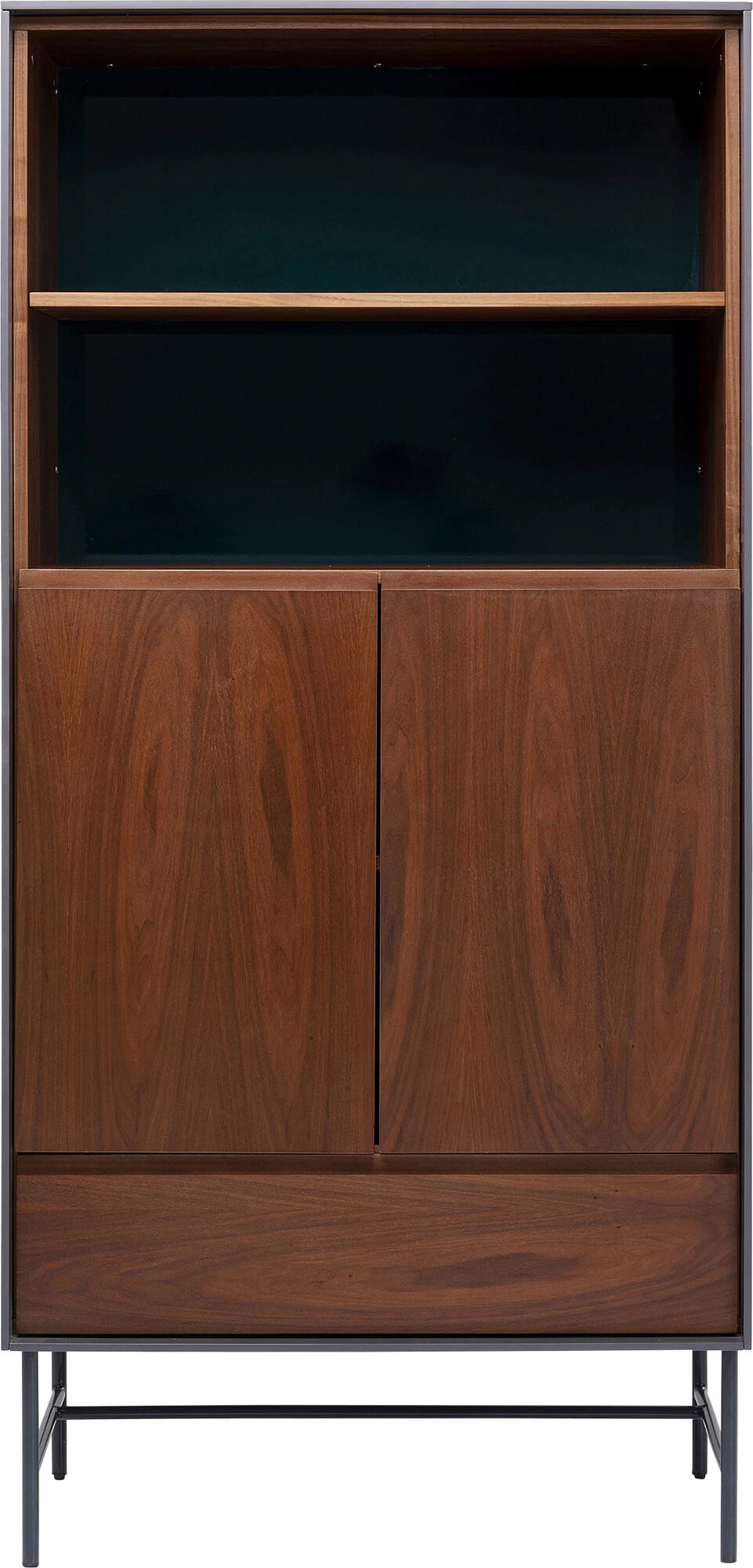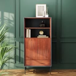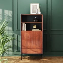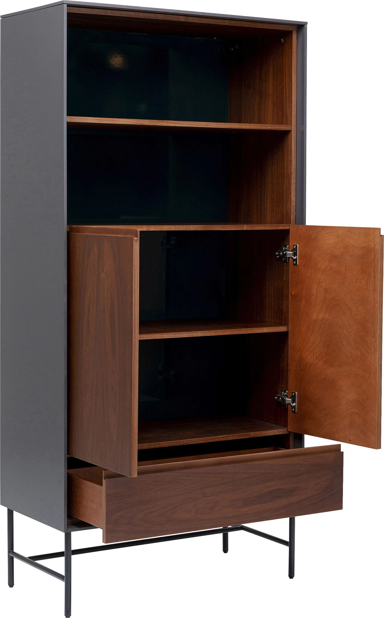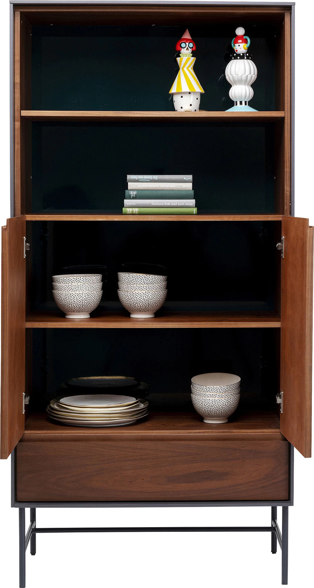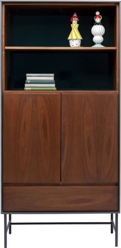 - Vitrinen-Schrank mit Walnuss-Holz Furnier in warmem Braun