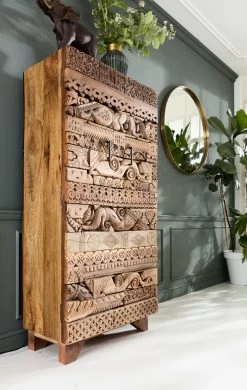 - Jeder Wandschrank ist ein Unikat, das die Geschichte der Hunderte Jahre alten Handwerkskunst des Schnitzens in Indien erzählt
