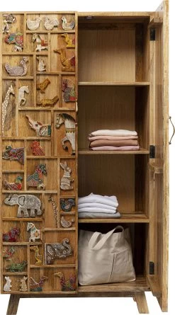 - Charmanter, handgearbeiteter Holz-Schrank mit Tier-Motiven, 163 x 81 x 36 Zentimeter (H/B/T)