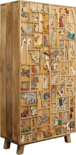 - Charmanter, handgearbeiteter Holz-Schrank mit Tier-Motiven, 163 x 81 x 36 Zentimeter (H/B/T)