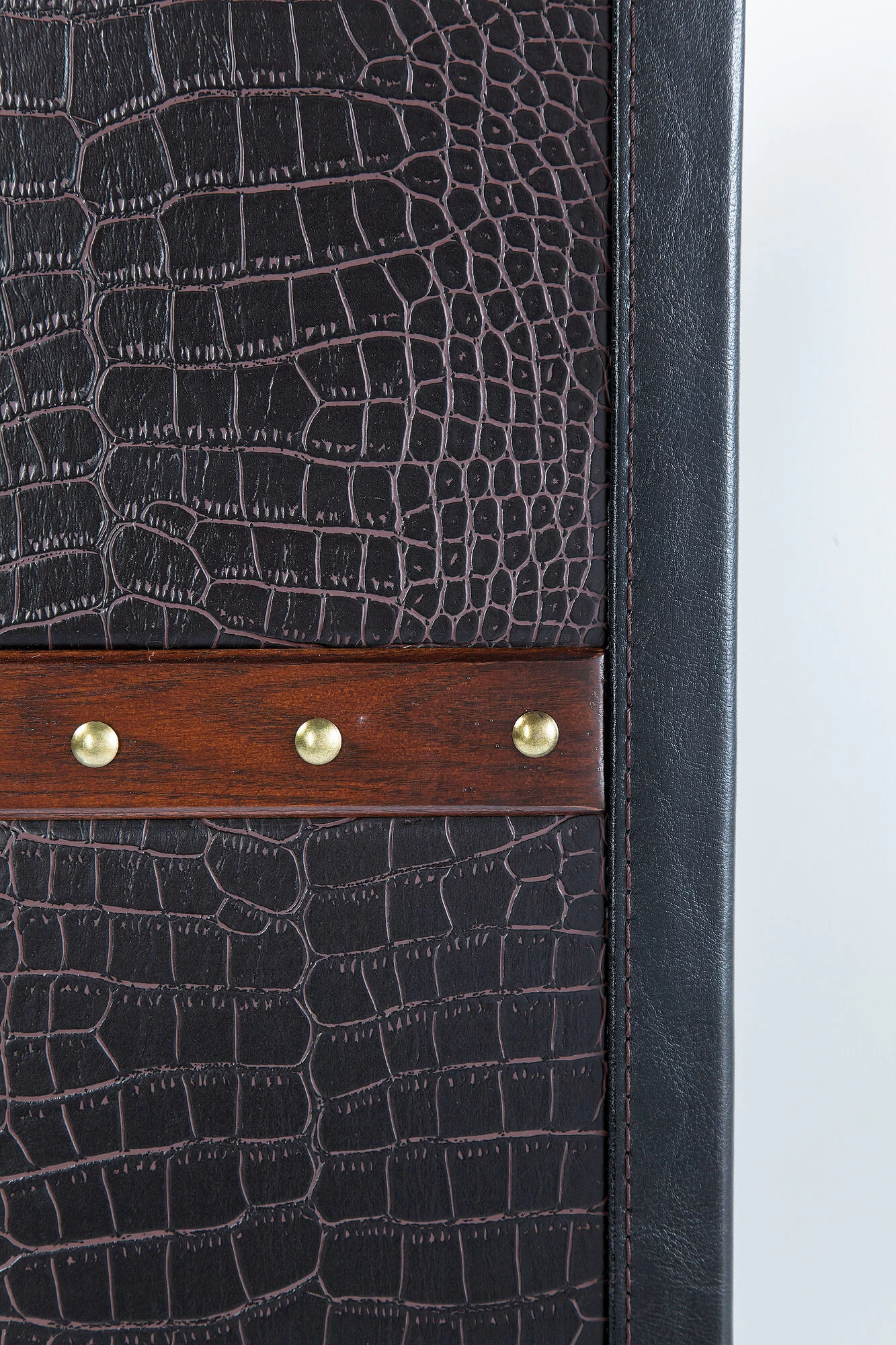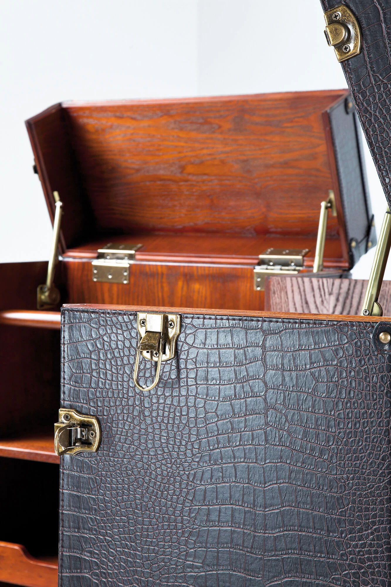 - Mobiler Barschrank auf Rollen mit beschichtetem Textilbezug in Reptilienprägung