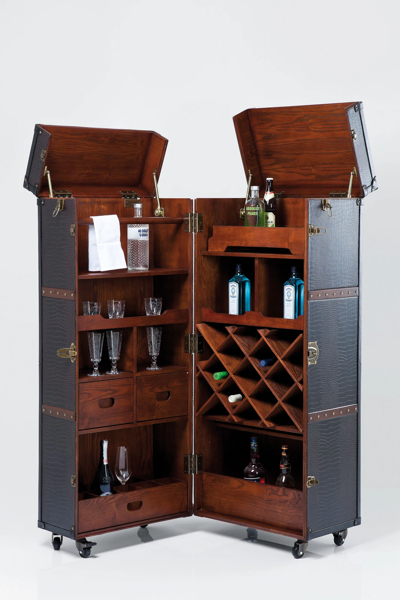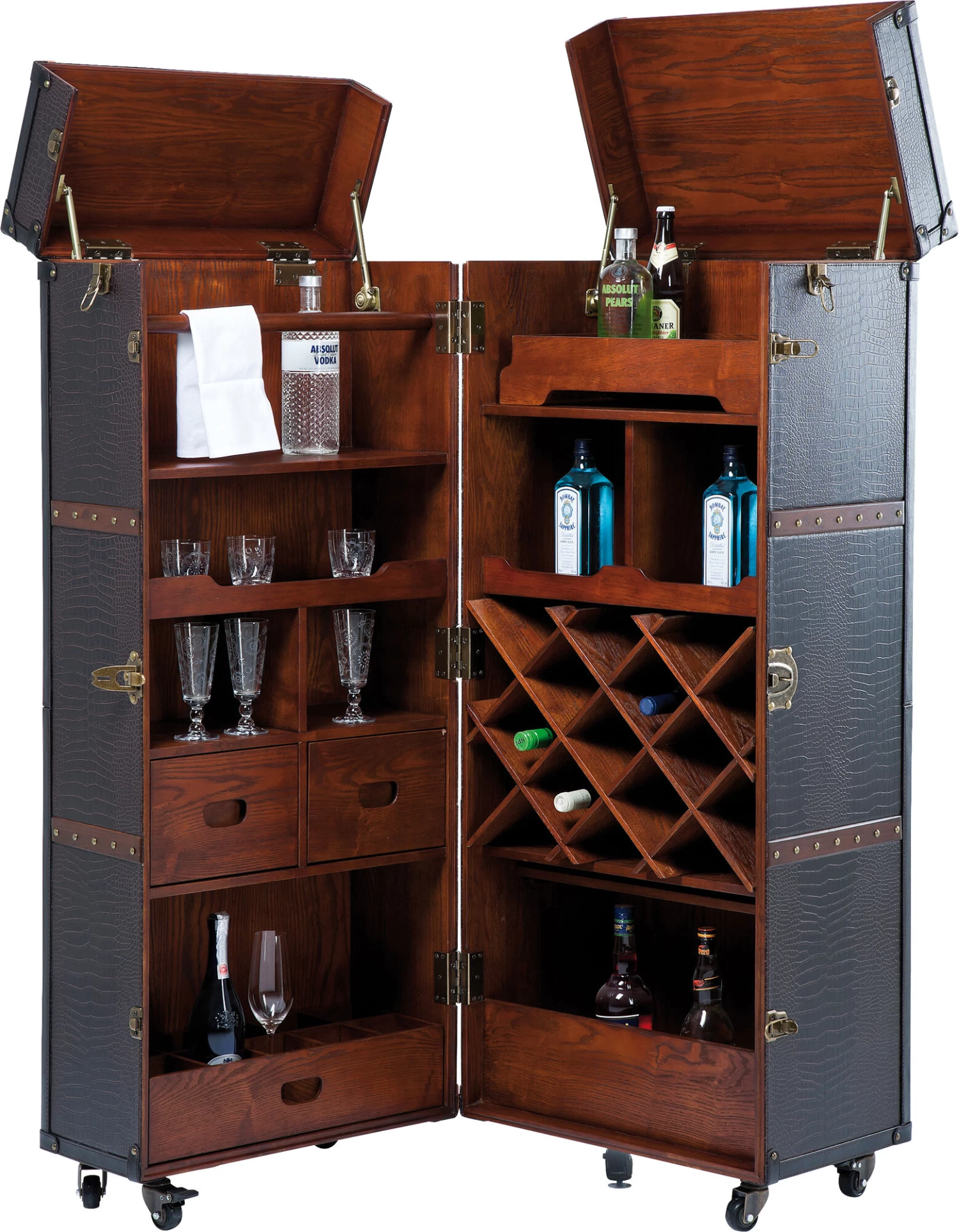 - GroĂźe Hausbar im Stil eines Schrankkoffers in Braun, 153x60x63cm (H/B/T)