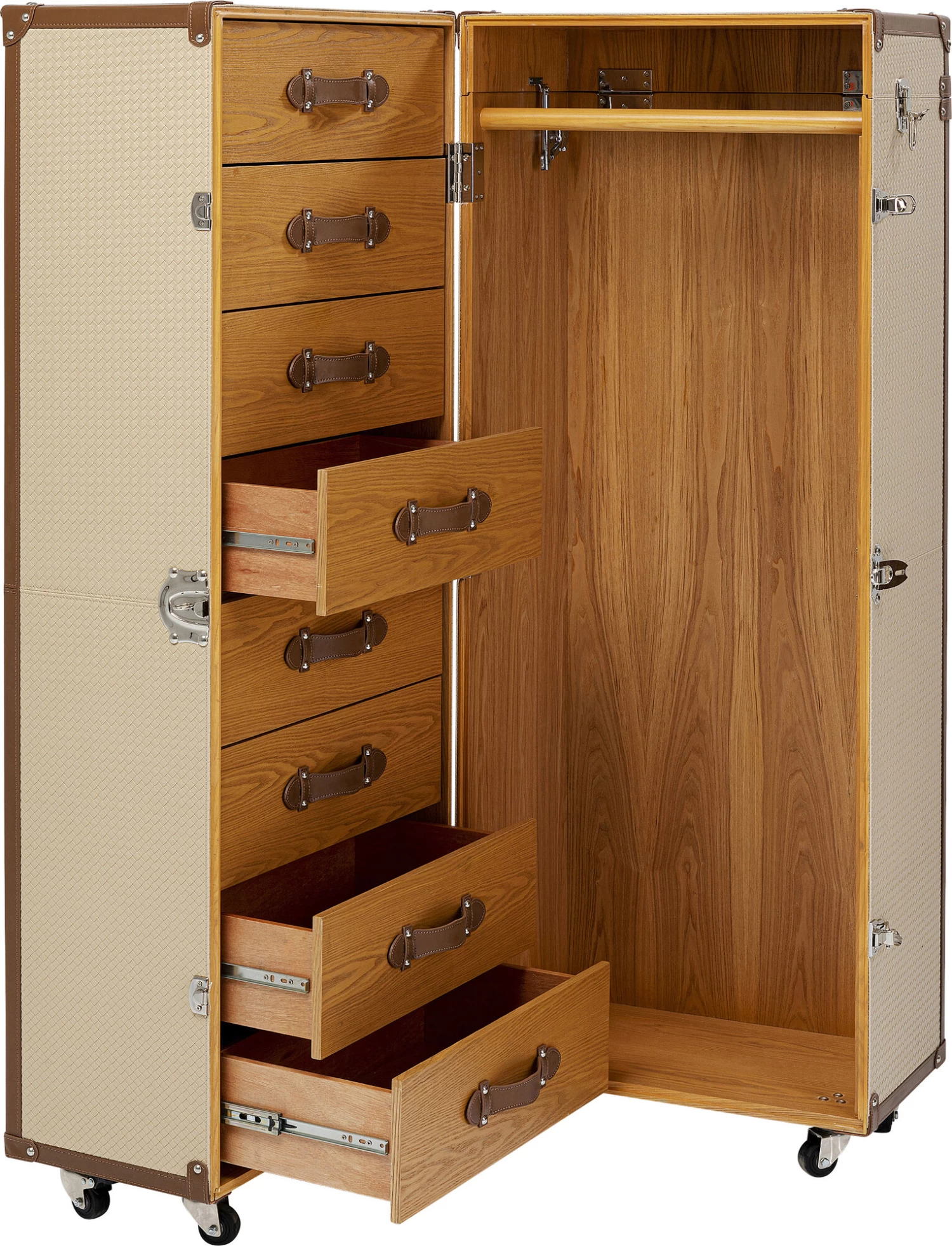 - Schrankkoffer in Beige mit Rollen, 155 x 58 x 66 Zentimeter (H/B/T)