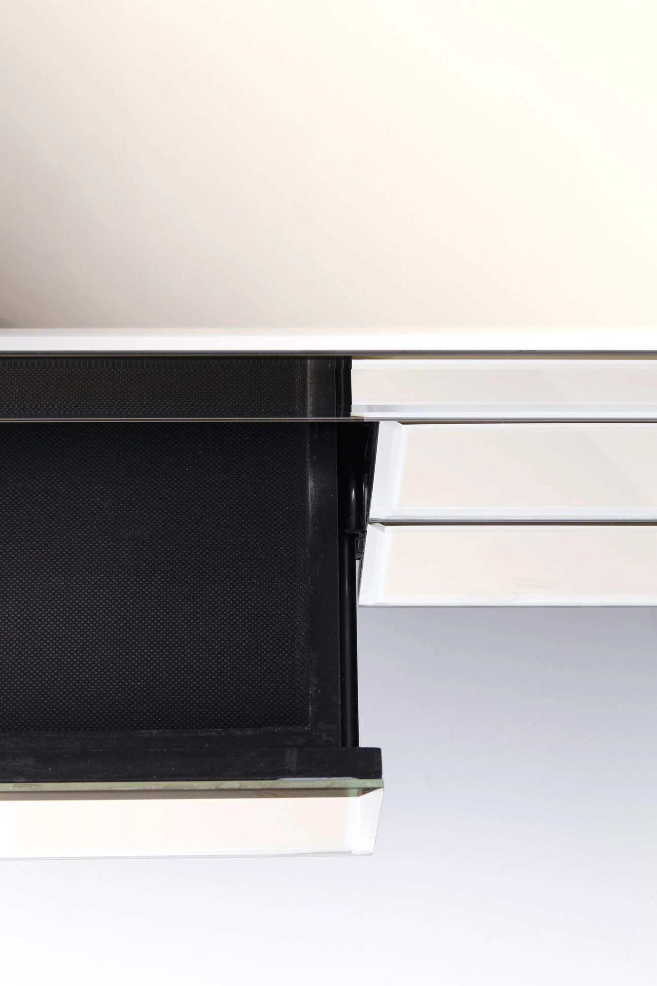 - Verspiegelter Schreibtisch mit drei Schubladen und hochwertigem Facettenschliff