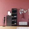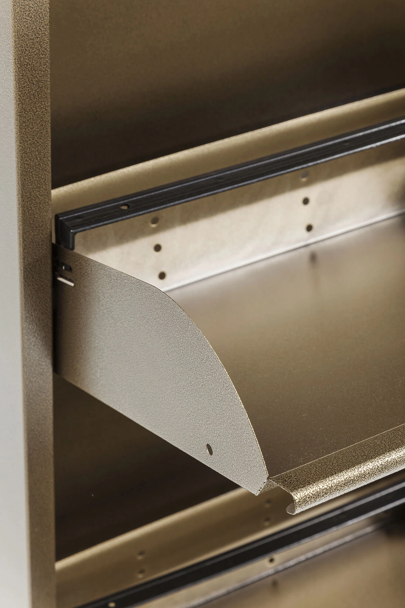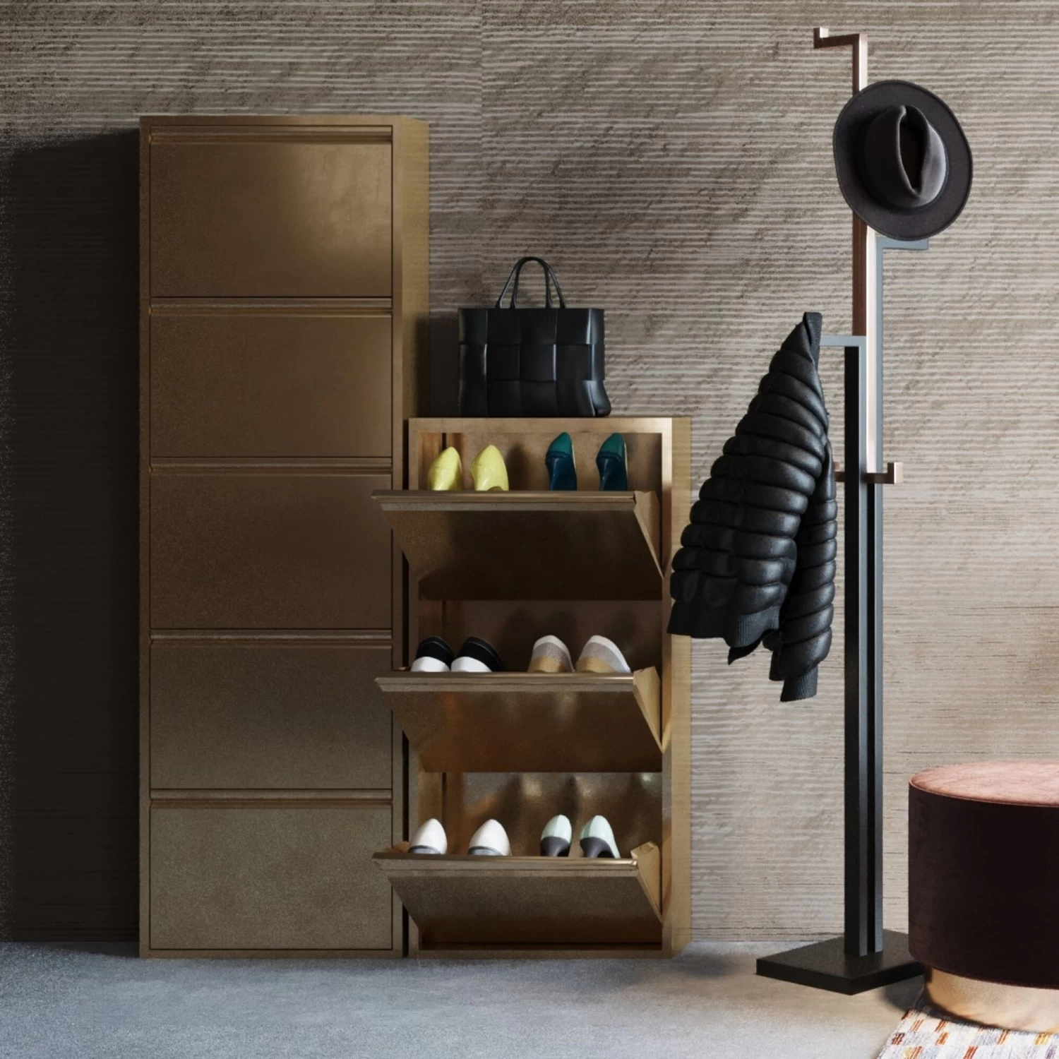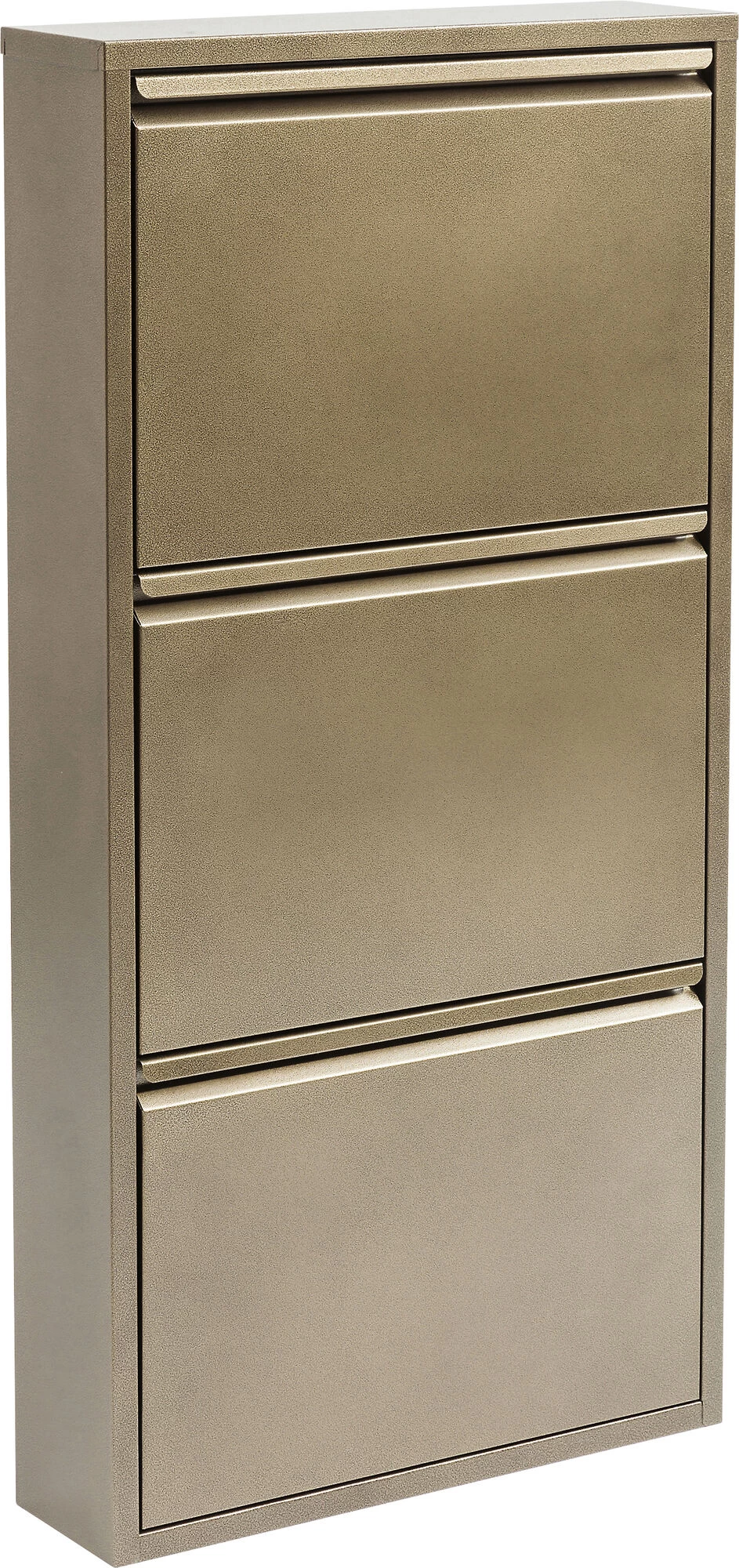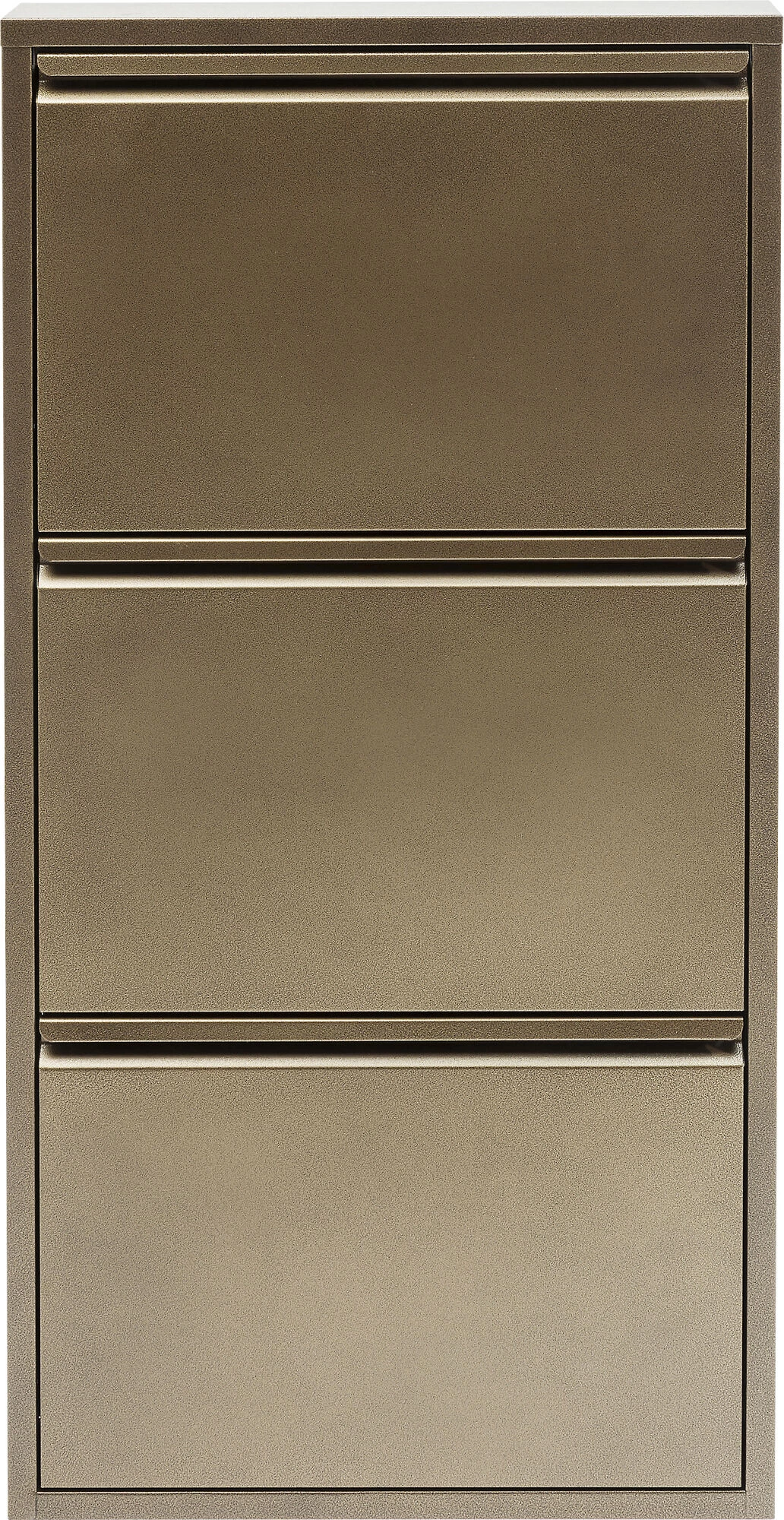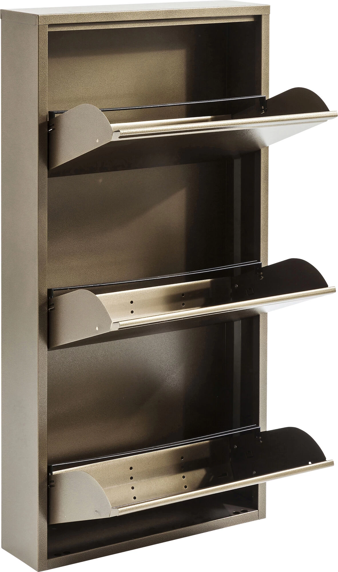 - Mittelhoher Schuhschrank in modernem Stahldesign mit drei Kippfächern für mindestens 6 Paar Schuhe, je nach Modell und Größe